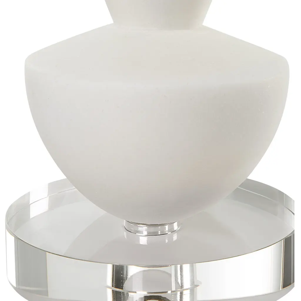 Sculptural Candle Holders Crafted From Ivory Man-made Stone That Accurately Replicates The Look Of Thassos Marble And Is Accented By An Elegant Crystal Foot. Includes Two, 3x3 Distressed White Candles. Sizes: S-5x12x5, L-5x16x5