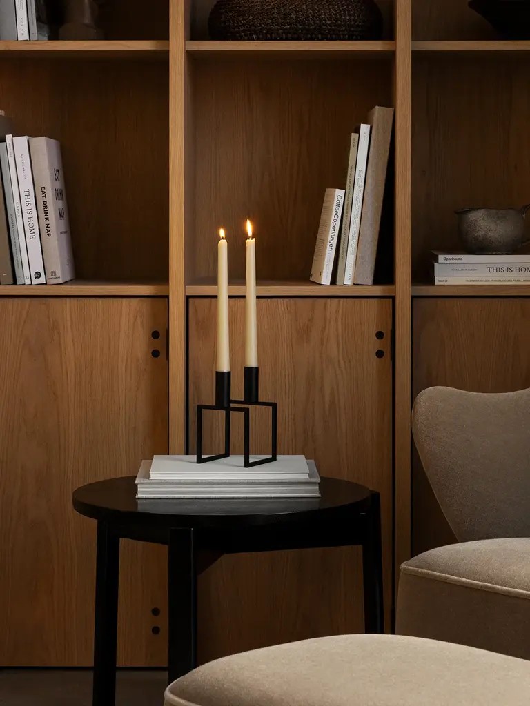 With a sharp sense of contemporary Functionalist style, Mogens Lassen designed the iconic Kubus candleholder in 1962, a piece once reserved solely for family and close architect colleagues. In 1983 he reapproached his own geometric candleholders, and the result was Line, whose shape was conceived through a mathematical formula. The two candleholders form a single line, and the architectural look fits perfectly with contemporary minimalism. Kubus and Line is still crafted in Denmark, and among architects and design connoisseurs it has achieved the status of a modern international design icon.