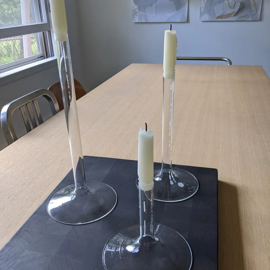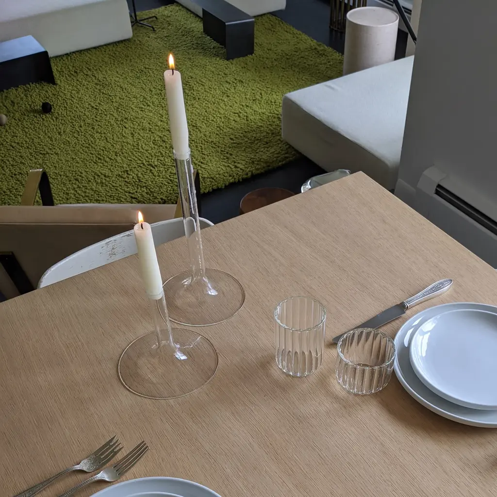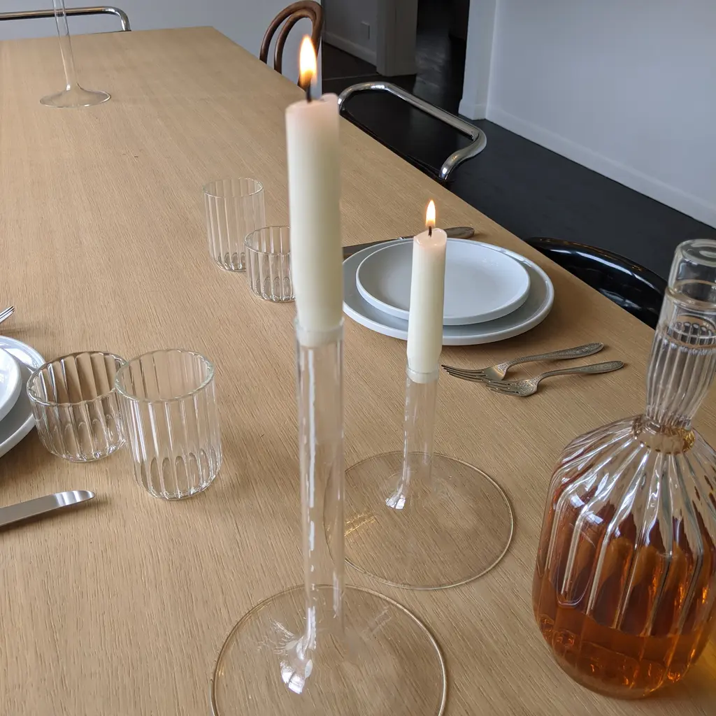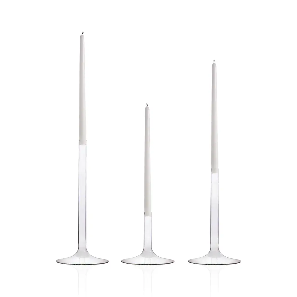 The Linea Candlestick from Fferrone, showcase masterful glassblowing techniques, resulting in a delicate and weightless design. Handcrafted from premium borosilicate glass, this candlestick elevates the candle's appearance and transforms it into a floating, magical light source. Great as a housewarming or hostess gift. Highlights
