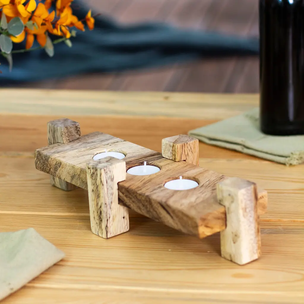 Lucie Wood Tabletop Candlestick