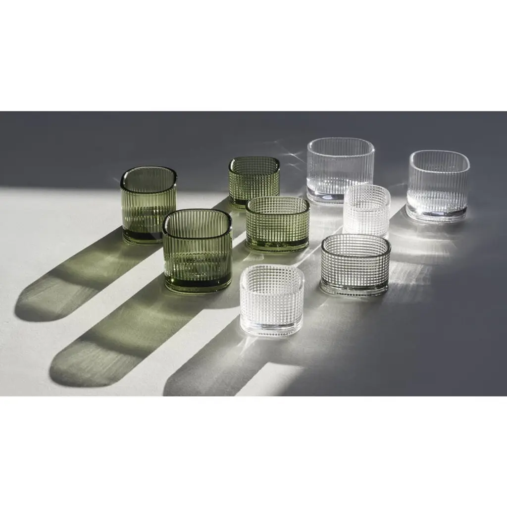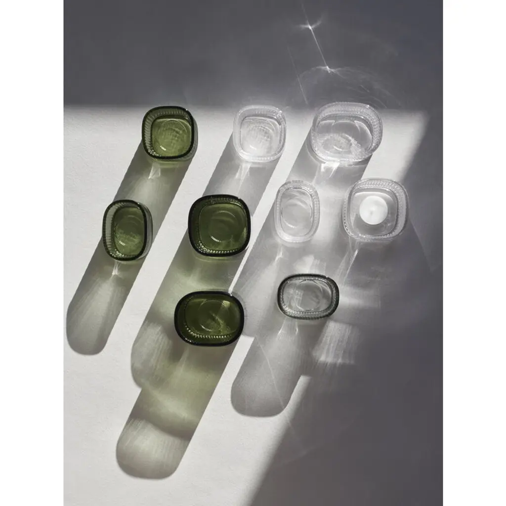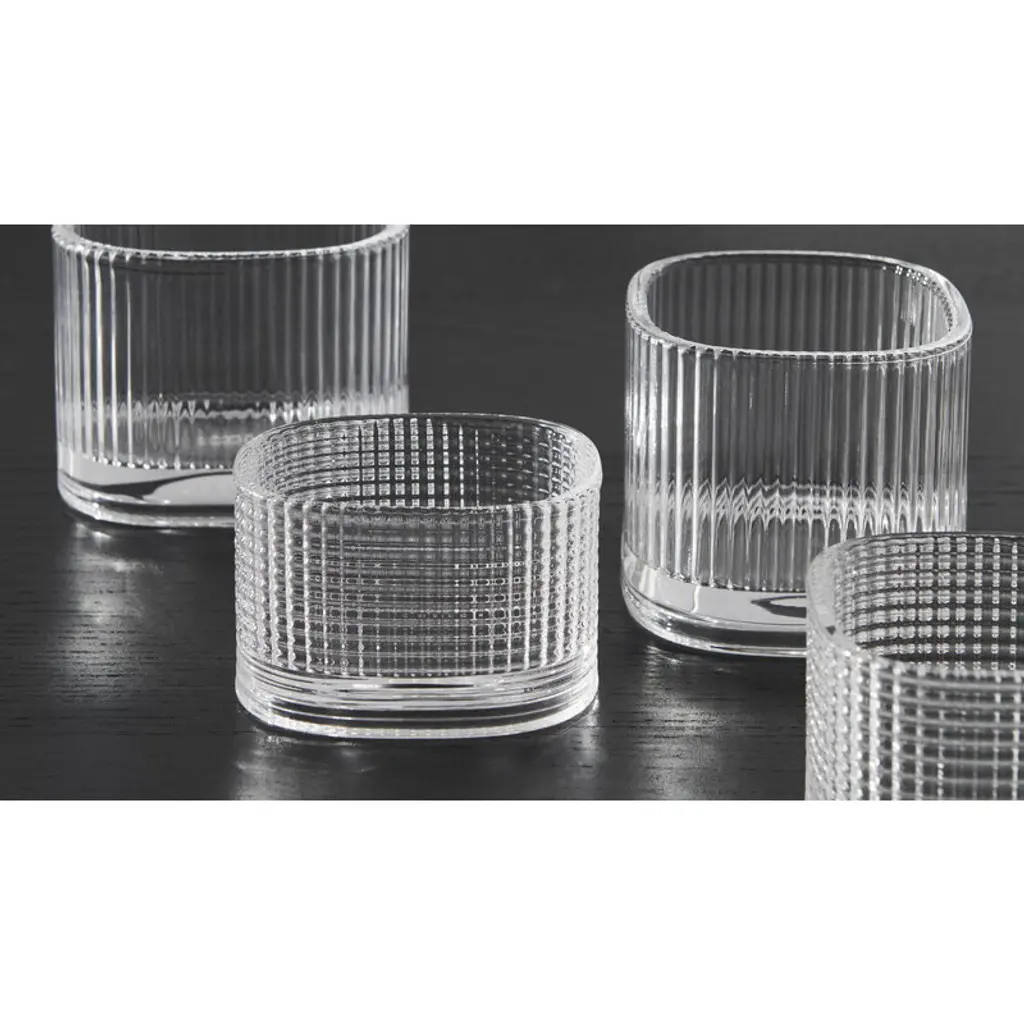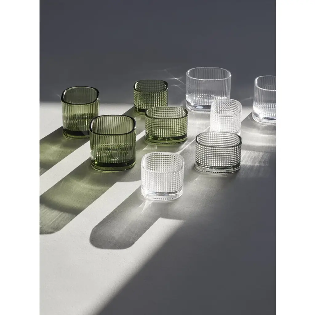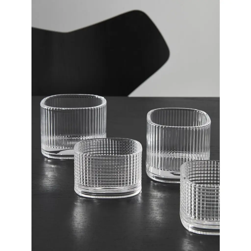 The Magica collection, a collaboration between Orrefors and Norwegian designer Andreas Engesvik, celebrates Scandinavian minimalist design and the perfect forms of geometry. The Magica series includes votives shaped as superellipses and supercircles, made from textured glass to maximize the interplay of light and shadow. The Magica super circle votive adds charm to both table settings and home decor, whether displayed individually or as part of a stylish arrangement of multiple candleholders.