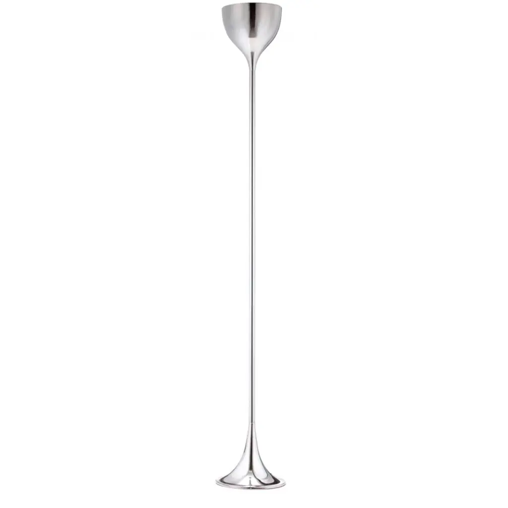 The Magra Candleholder exhibits a seductively thin profile that bestows an elegant ambiance to an interior space. Crafted from polished stainless steel, the piece features a tapered look with a slim profile and rounded base for a chic, contemporary look.