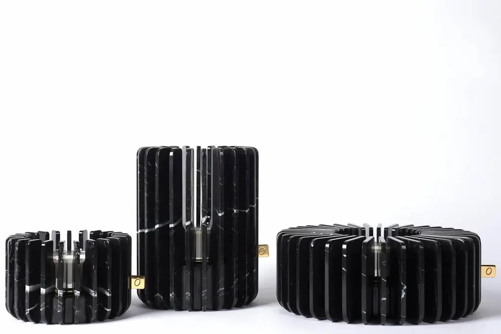 Marquina orion candleholder set by Dan YeffetDimensions: Ø 18.7 x H 12 cm Ø 19.7 x H 25 cm Ø 32 x H 12 cm Materials: Marble Size available: Marble available:MarquinaGrey Saint LaurentPortoroPaonazzoCalacatta Dan YeffetBorn in 1971 in Jerusalem, Israel. Studied Industrial Design at Bezalel Academy: School of Art and Design in Jerusalem (1999-2001). He then moved to the Netherlands where he graduated from the Gerrit Rietveld Academy in Amsterdam in 2002 (BA in Industrial/product design). After his graduation he set up his studio in Amsterdam.In 2005 he moved his studio to Paris where he still works. Dan’s work stretches from space to objects, and everything in between, and in various methods, from Classic craft work to cutting edge technologies.
