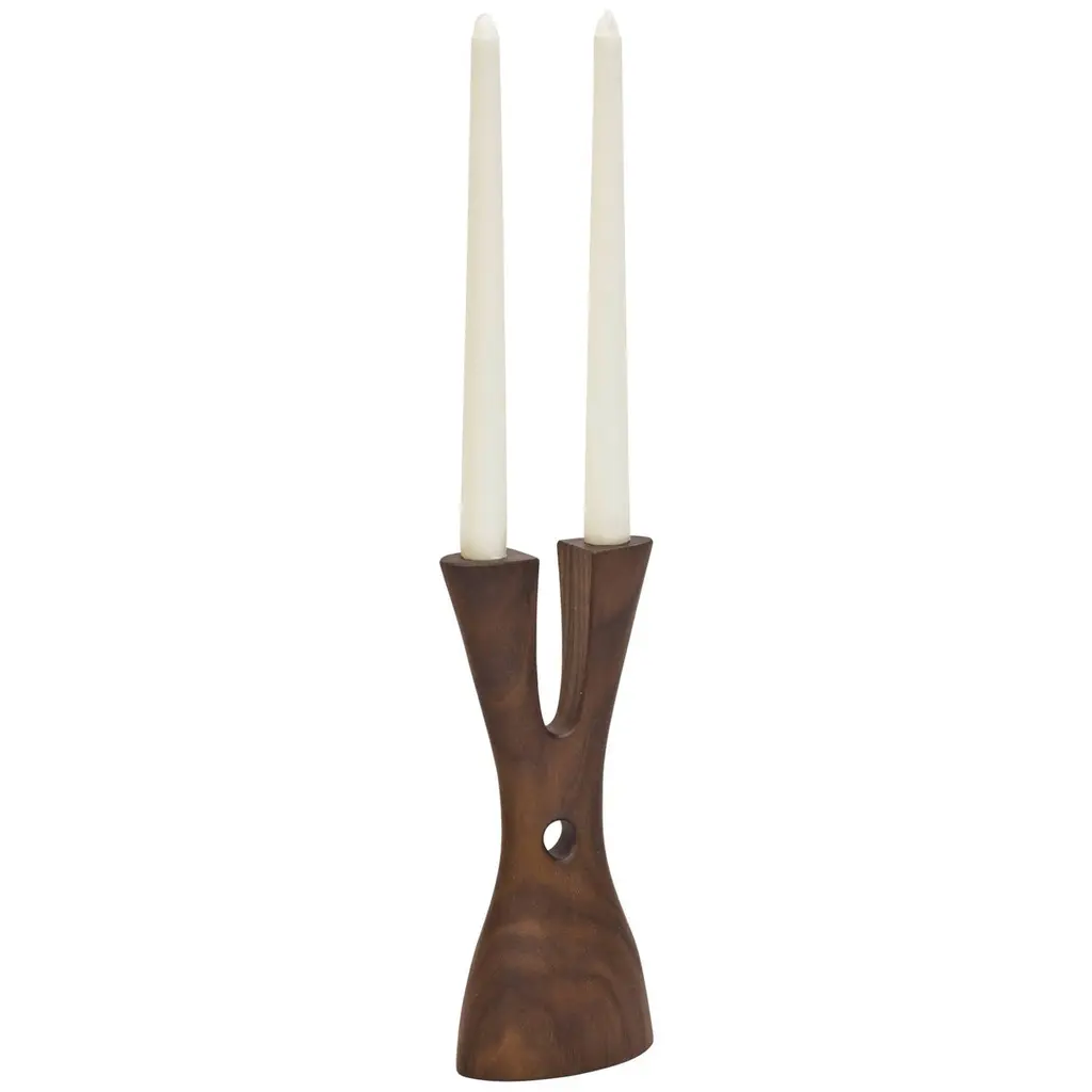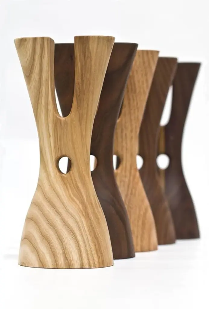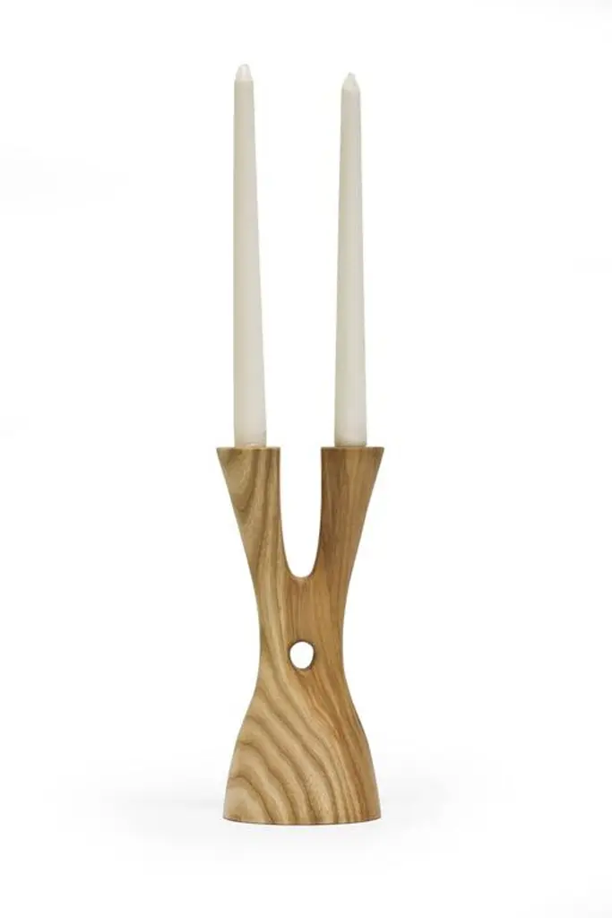 The Mastodon by Noah Norton for Wooda powerfully lifts and holds two tapers. Inspired by the natural world and crafted in beautiful walnut, ash, and oak, Mastodon is designed to brighten a room and encourage conversation.About the designer: Noah Norton is a designer who strives for balance and harmony in the work he creates, believing that the simplest solution is often the best. His work includes furniture, lighting and a variety of products for the consumer and Industrial markets. Additionally, Norton is an Associate Professor of Industrial Design at the University of Wisconsin-Stout where he can be found teaching studio courses and leading international collaborative projects.The Mastodon candlestick is also offered in a set of two candlesticks for $249. Please inquire if interested. A set of turned brass inserts are available as an extra to give the ability to hold standard ?”, as well as the smaller ½” tapers for an additional cost of $35 per set.