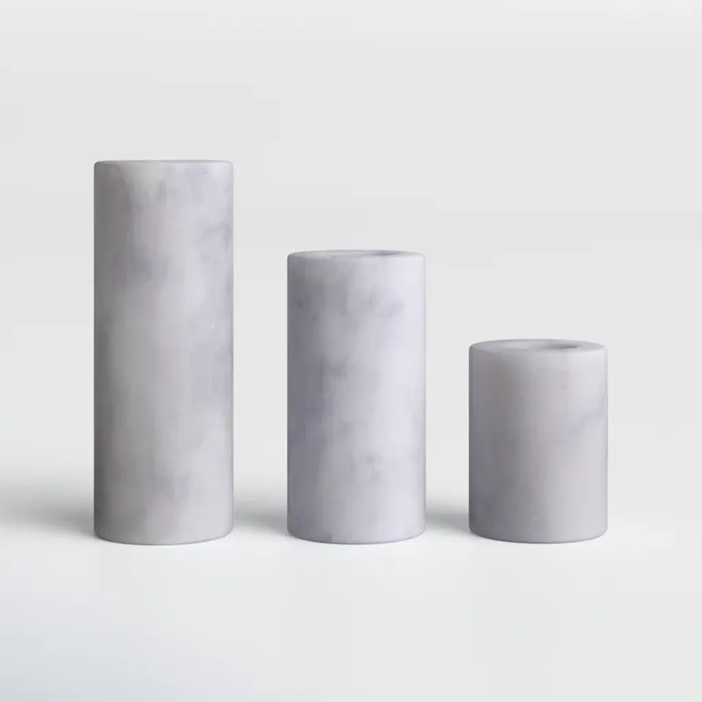 Matheson Set Of 3 White Marble Taper Candle Holders