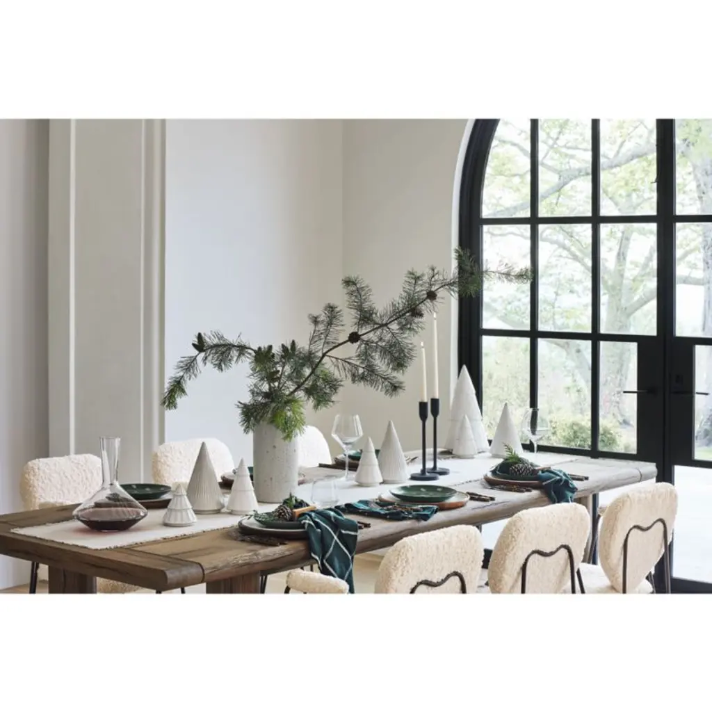 A lot of skill goes into crafting this set of deceptively simple candleholders. Each candle holder is hand-cast of aluminum and then ground and drilled by skilled artisans to achieve its dramatic simplicity. This set of 11- and 18-inch candle holders rise on slim stems to hold taper candles in tulip-shaped cups.Part of the Leanne Ford collection, exclusive to Crate & Barrel. A rising design star with a motto we can get behind"paint white, wear black"Ford created pieces that capture her cool, artful vibe.