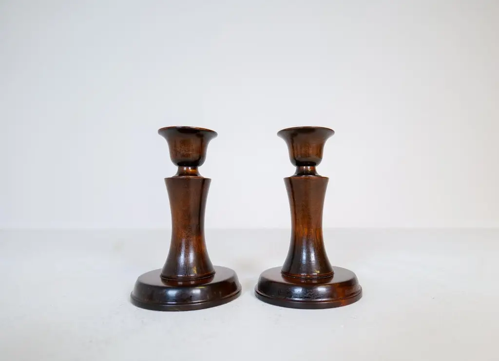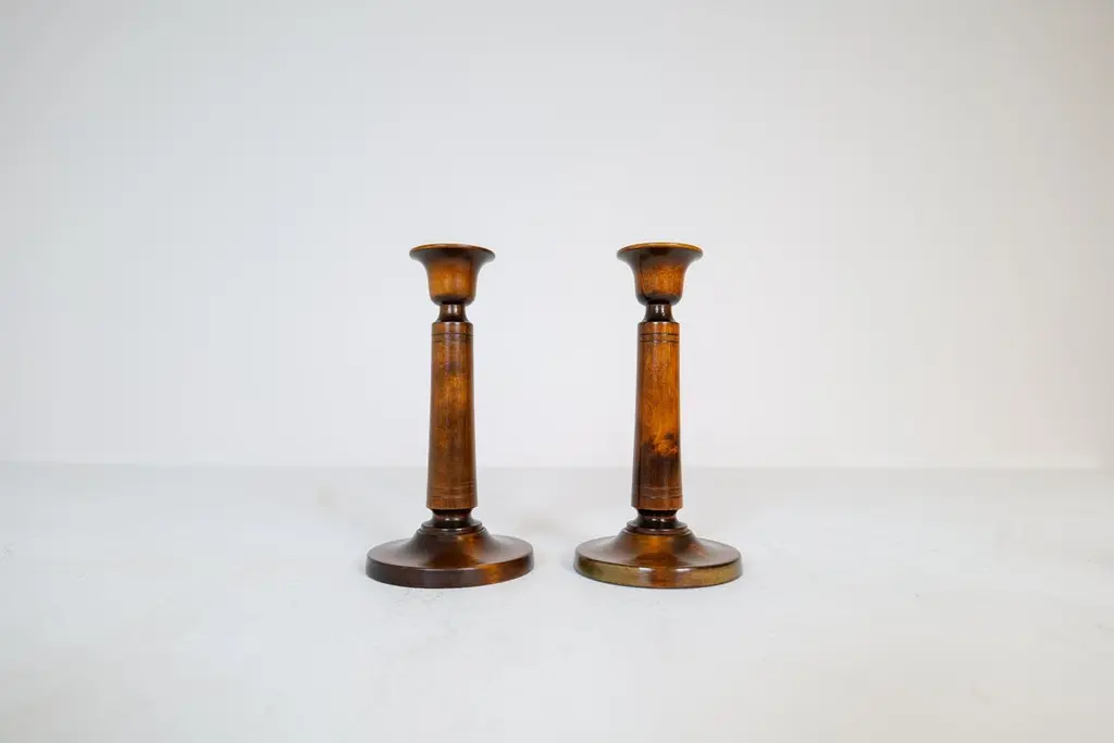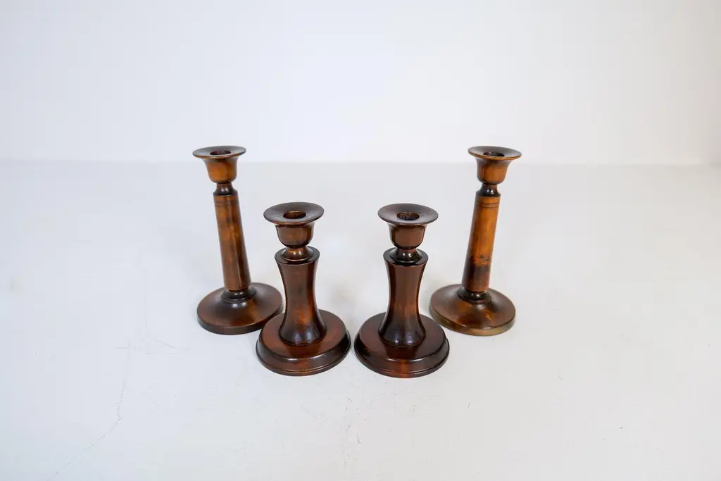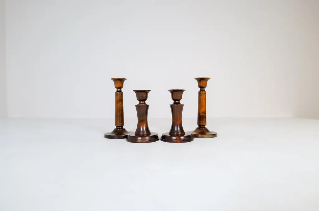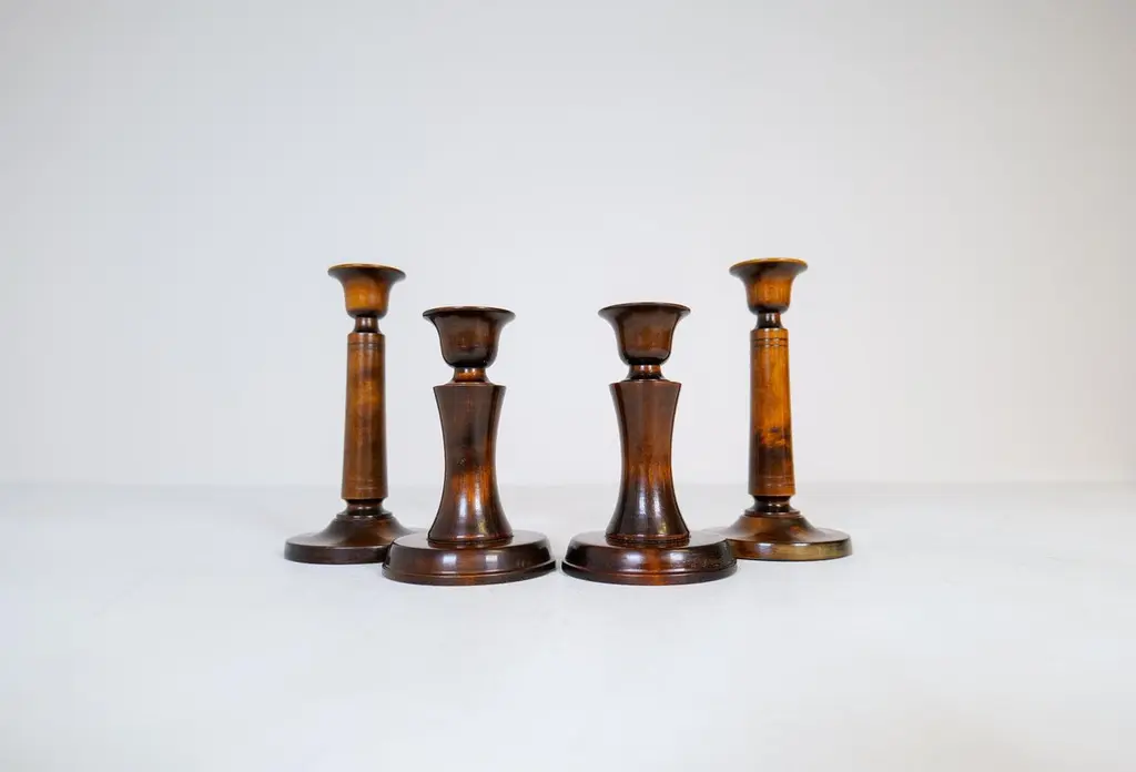 Midcentury Set Of 4 Candlesticks In Birch Carl Malmsten Sweden 1960s