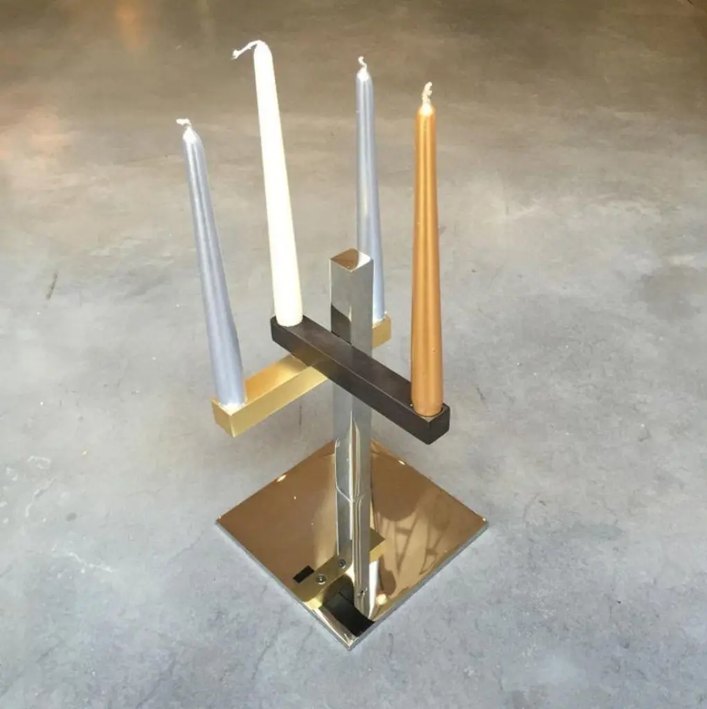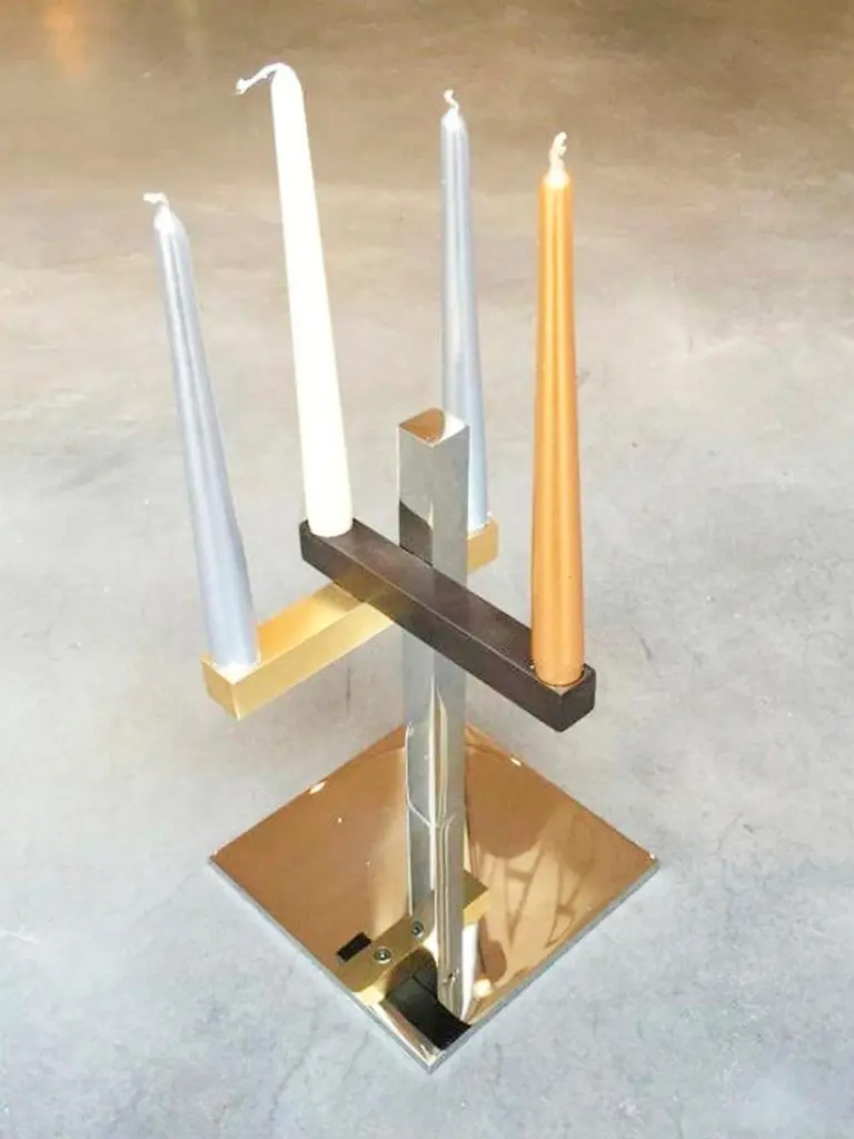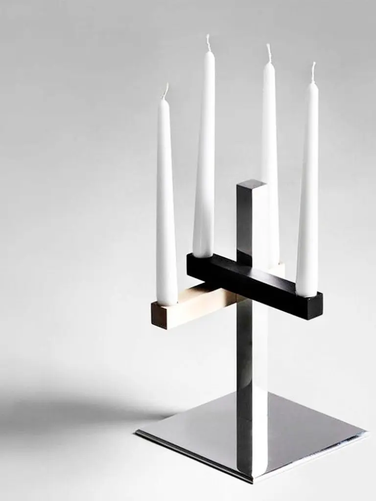 In a simple way, this candle holder is the smallest design of the Mikado line.It is made of polished stainless steel, gun metal, brushed light oxidized brass base.