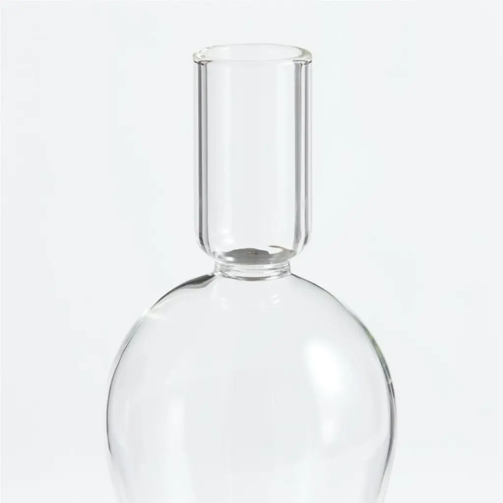 Milano reimagines classic candlesticks in clear glass, streamlining the ornate curves to stunning effect. Hand-blown by skilled craftspeople, this tall candle holder culminates in an elongated cup that supports a taper or double as a bud vase. Display the sophisticated piece solo for a sculptural look, or layer with other exclusive Milano glass taper holders in various heights for a more extravagant effect. Due to artisanal crafting, each medium candlestick is beautifully unique.