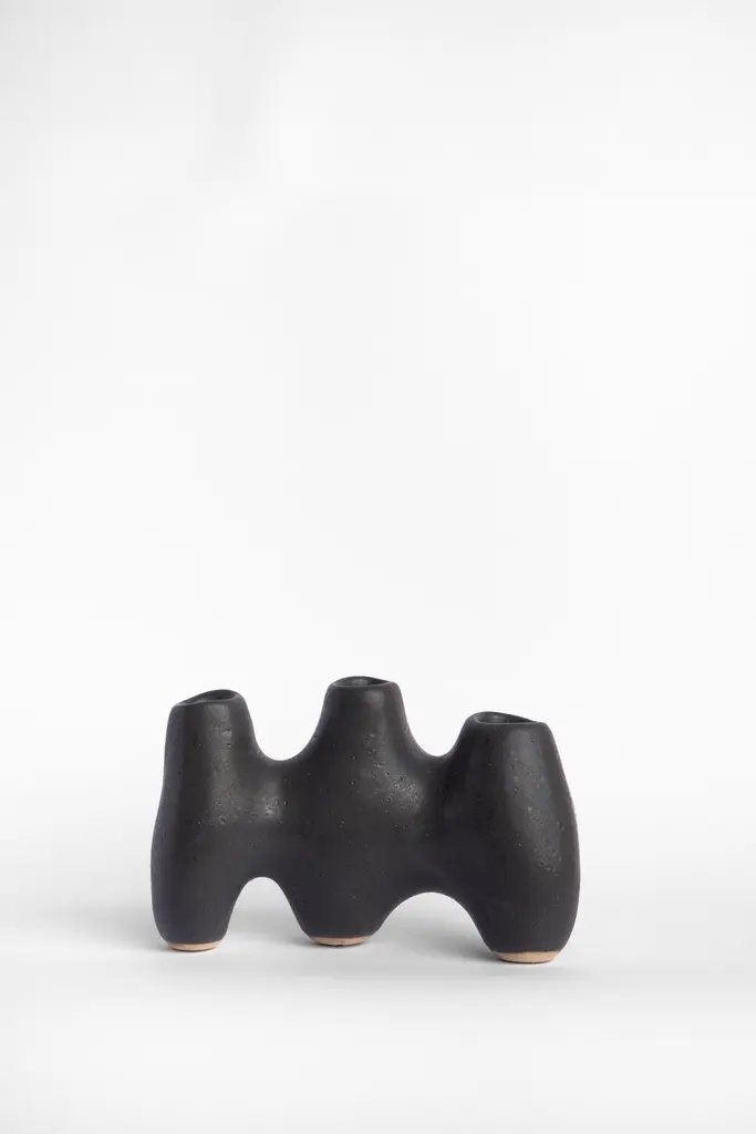 Mitosis candle holder by Camila ApaezOne of a KindMaterials: StonewareDimensions: W 10 x D 7 x 7 H cmIla Ceramica emerged from a process of inner inquiry where ceramics became a space for presence, silence, touch and patience. Camila discovered the shapes that inhabit her in an organic and intuitive manner, leading her to continuous research and development of Material, processes, and also herself. What began as a silent personal journey, has turned into a place where poetry, nature and corporeal silhouettes meet as constant themes in Ila's creative process. The conversations between the pottery wheel and manual construction derive into utilitarian and sculptural pieces, hosted in two main lines of work “centrifuga” functional ware for everyday life, and “manual” sculptural pieces that, while still functional, highlight their presence and their own dialogue with space, a constant theme for reflection in Ila. Ila Ceramica is a small studio with 100% handcrafted creative processes; glaze and clay research is slow and thorough, and no casts are used. Although pieces can be made Based Upon previous designs, each piece has its own personality.