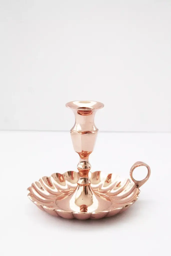 The Mocha Check Medium Candlestick is made of enameled steel, rimmed in bronzed stainless steel, and decorated with hand-painted, color-dragged Mocha Checks. Display it with a dinner candle singularly or with its Mocha Check counterparts for a dimensional grouping.