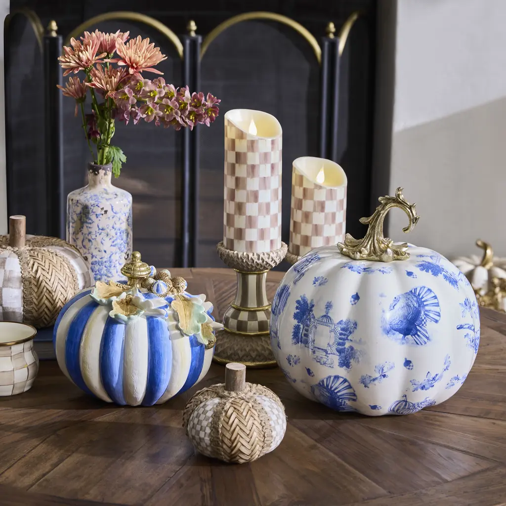 Light up your tabletop or mantel with this Mocha Pillar Candle Holders Set. Hand-painted with our warm Mocha Check pattern with interwoven texture, they're perfect for pairing with your favorite pillar candles.