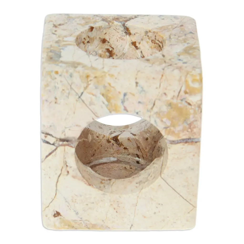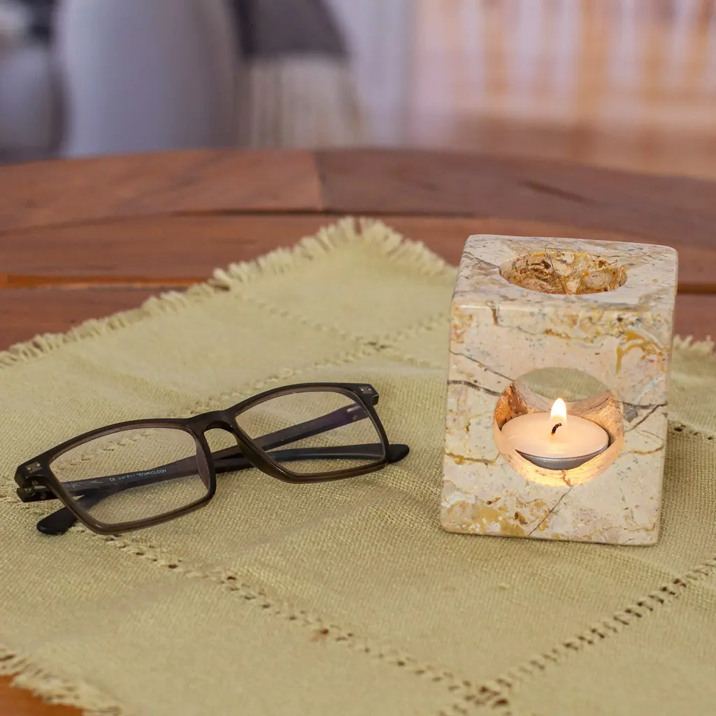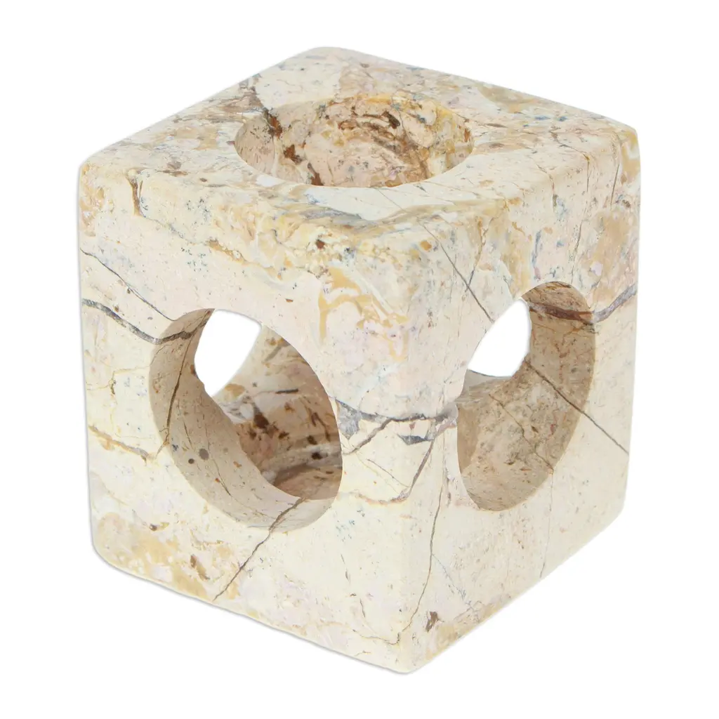 The avant-garde art style invites you to reflect and relax in the warm ambiance of your home, resting next to a modern accessory with an ethereal vibe. Mexico's Sierra Family works with a natural onyx stone to create this tealight candleholder in a minimalist cube shape, whose round openings allow you to place a little candle inside while creating a captivating illusion.