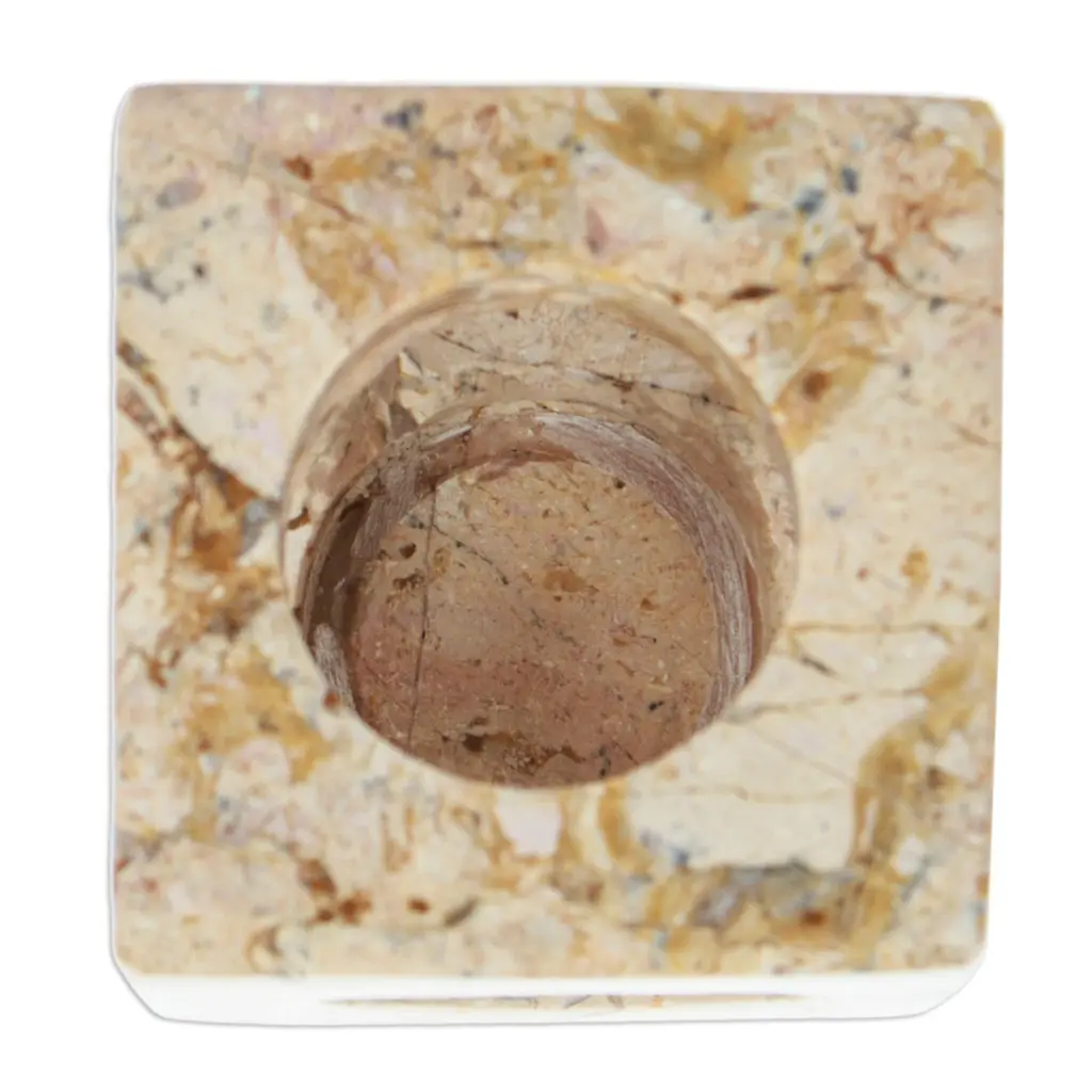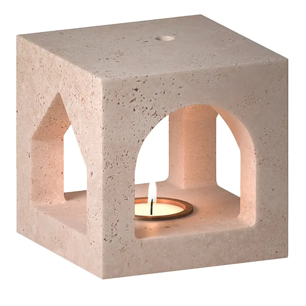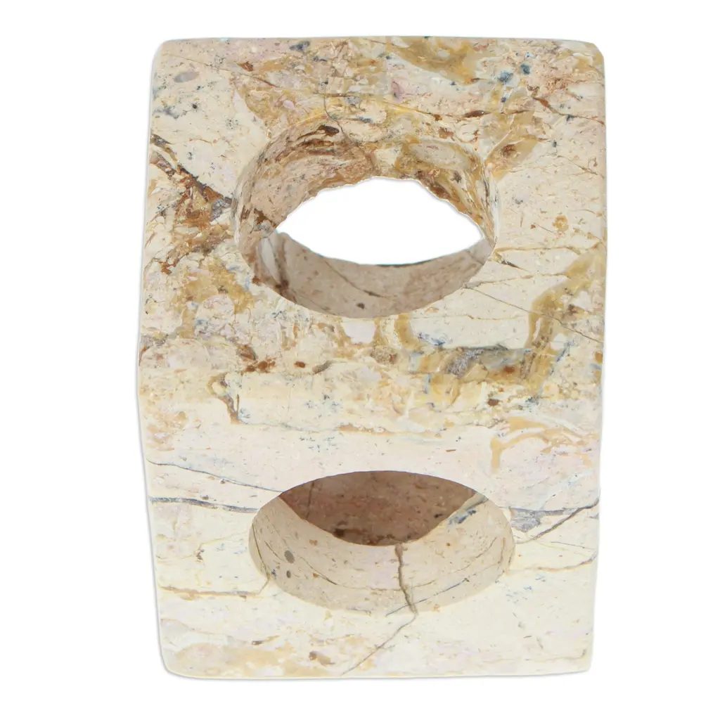 The avant-garde art style invites you to reflect and relax in the warm ambiance of your home, resting next to a modern accessory with an ethereal vibe. Mexico's Sierra Family works with a natural onyx stone to create this tealight candleholder in a minimalist cube shape, whose round openings allow you to place a little candle inside while creating a captivating illusion.