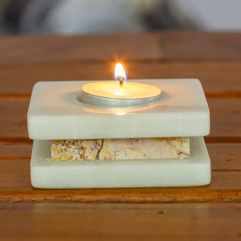 Modern Cube-Shaped Natural Onyx Tealight Candleholder- Avant-Garde Sparkles