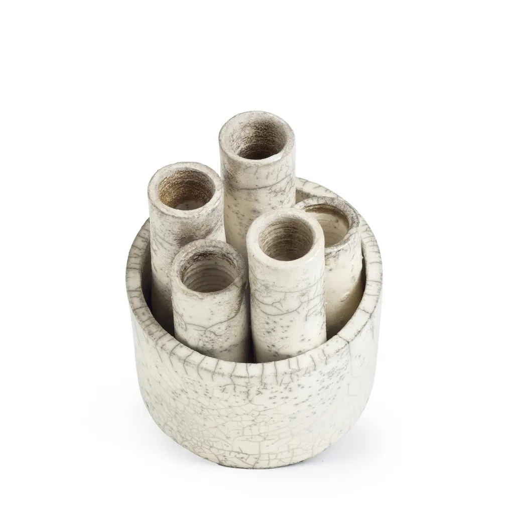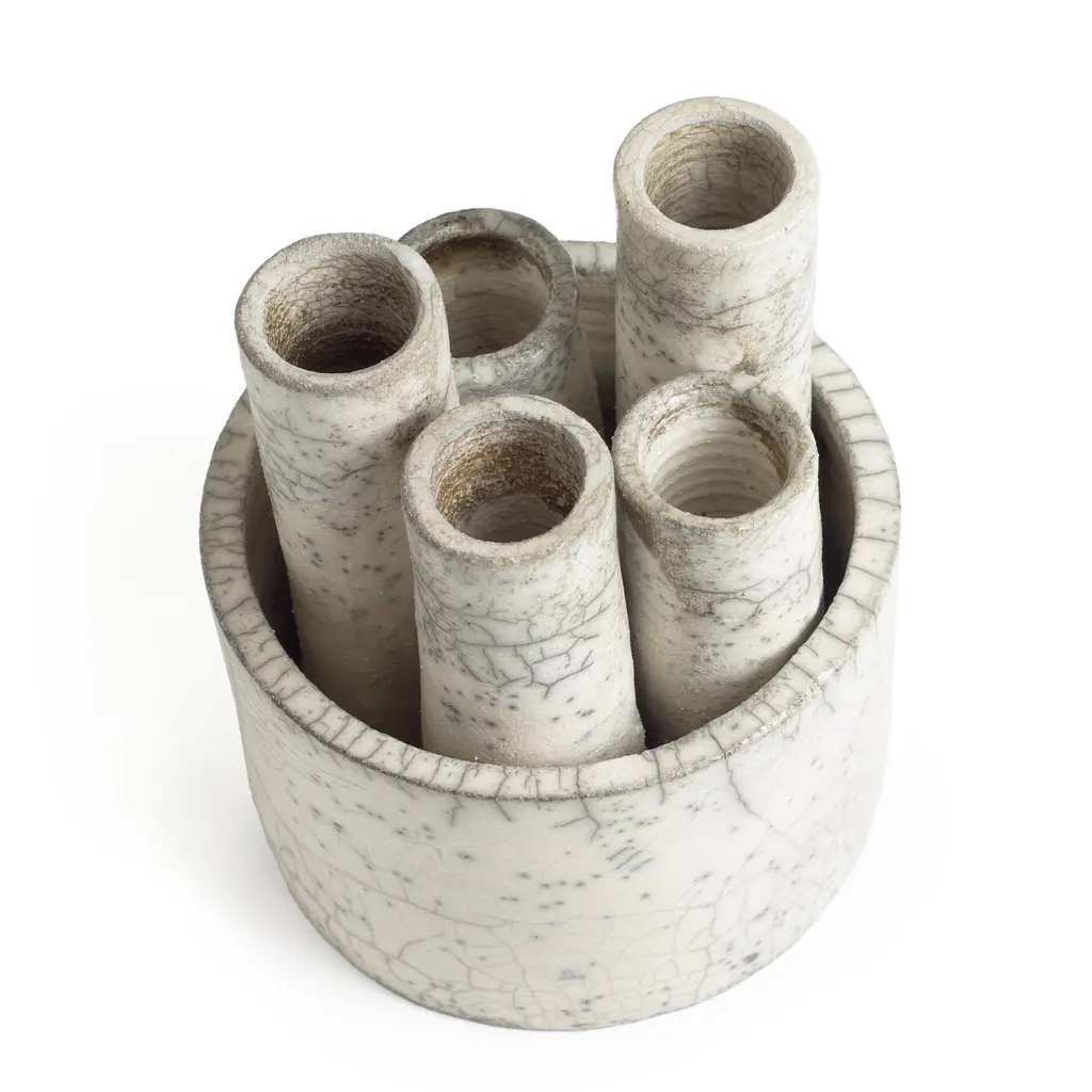 Modern Metropolis S Candle Holder Sculpture Raku Ceramic White Crakle