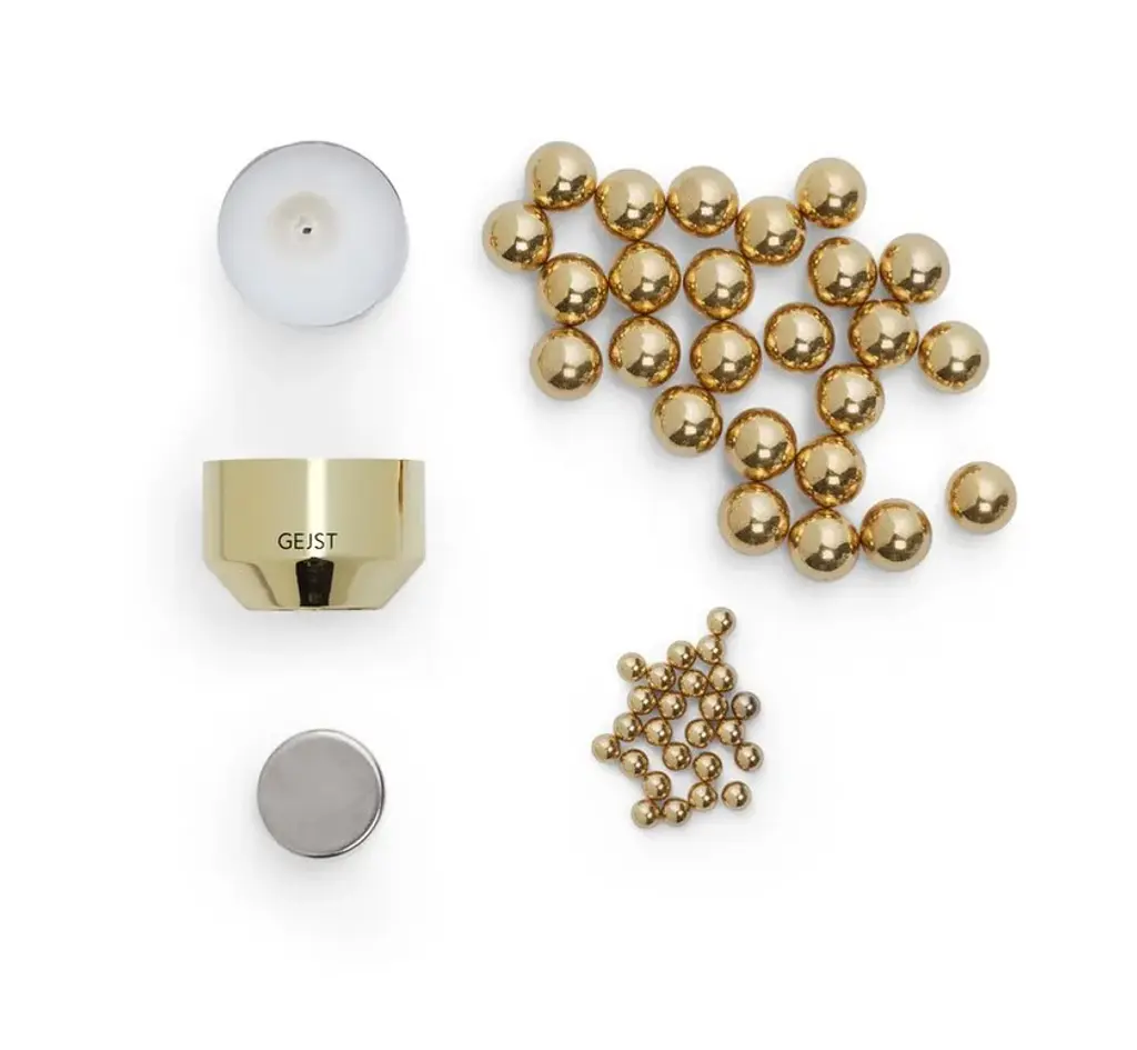 Consisting of a metal pipe, magnetic sphere and numerous steel balls, Molekyl is a unique candleholder that plays with materials, magnets, shapes and individuality all at the same time. The final design of Molekyl is unfinished, with the ultimate shape decided by you. As all of the elements are held together with a magnet that are powerful enough to interact through non-magnetic materials, unique objects are created that seem to challenge the traditional laws of physics. Use the candleholder as a centerpiece on the table or on the windowsill. The essence of Molekyl is individuality and personalised creation.Colours: 10050 - Black10051 - Chrome10052 - Brass