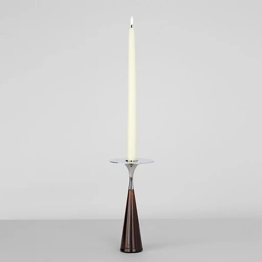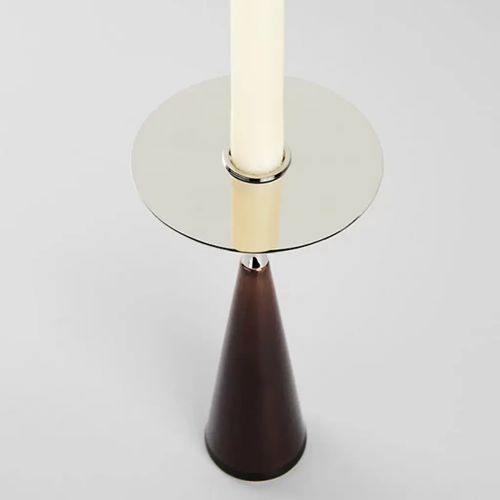 The Moor Candleholder is the latest exploration into the combination of ceramic and metal. The conical stoneware base design blends into a trumpet-shaped aluminum top, culminating in an effortless union of contrasting materials.