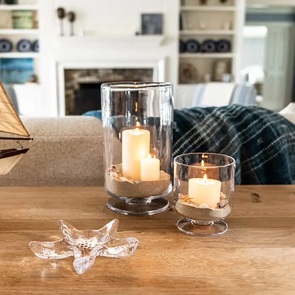 The Nantucket Hurricane from Simon Pearce is a timeless and beloved design, seamlessly transitioning ambiance from indoors to out. Perfect for both elegant interiors and luxurious gardens, this versatile piece adds a touch of sophistication to any setting. Embrace the art of refined living with this iconic hurricane. Highlights