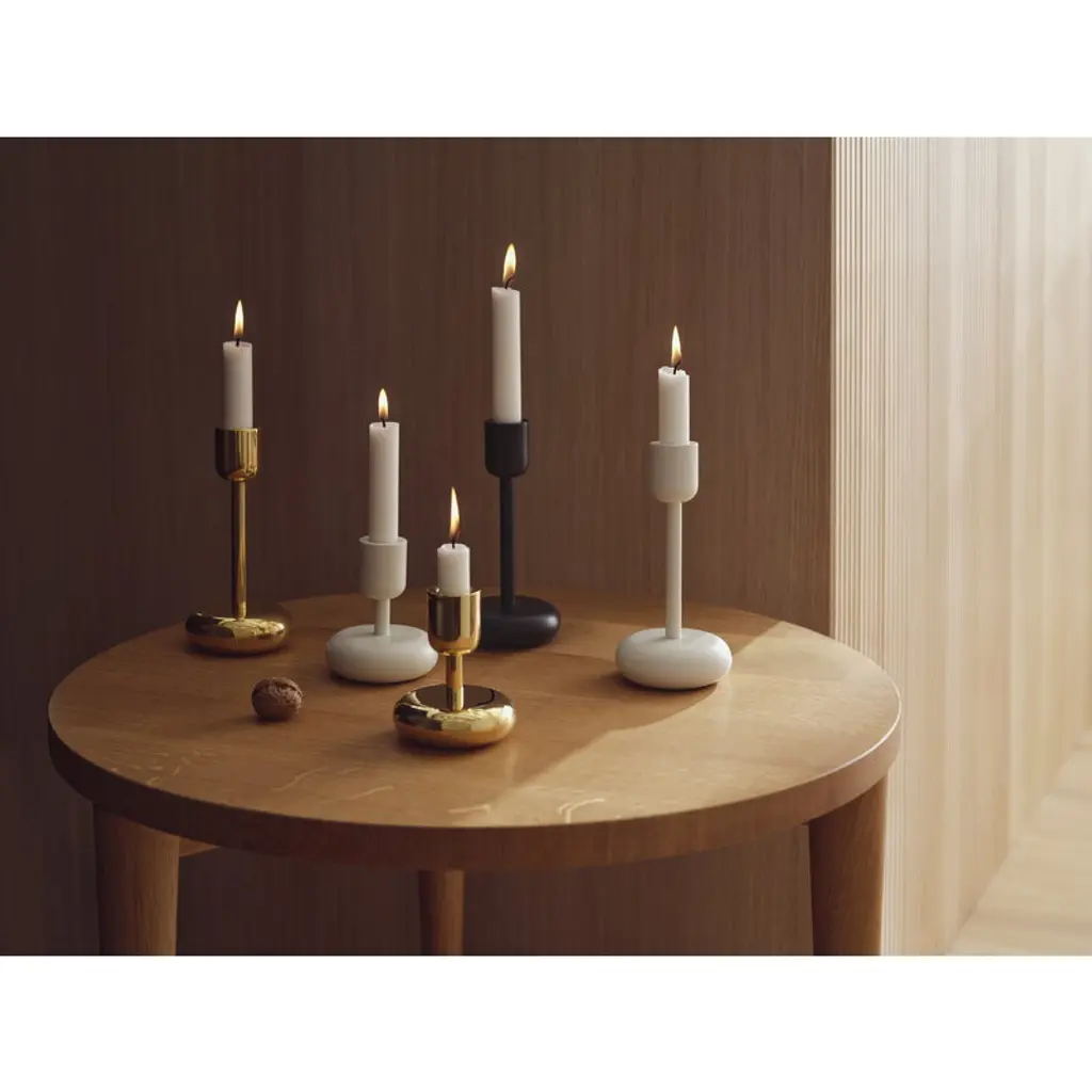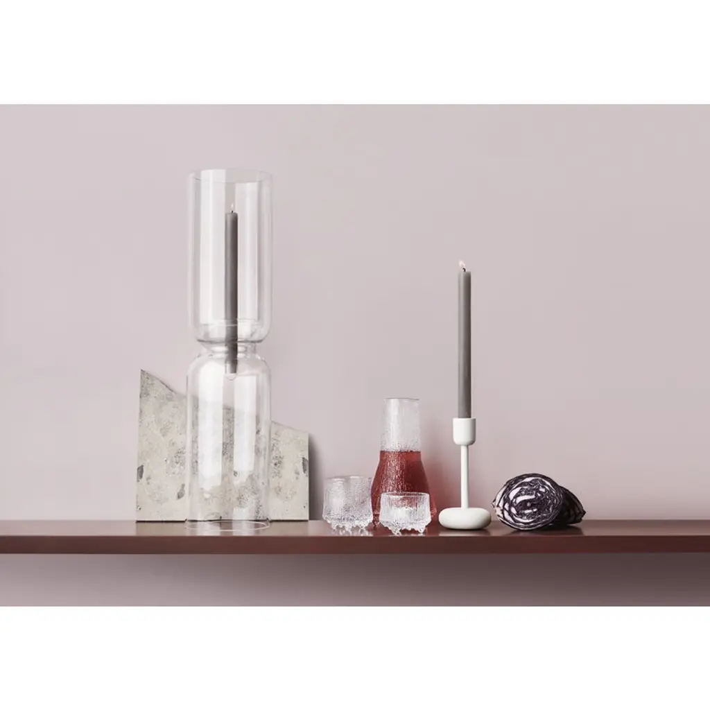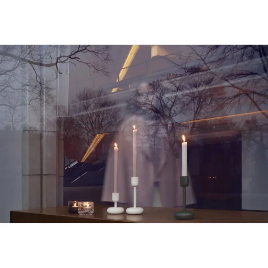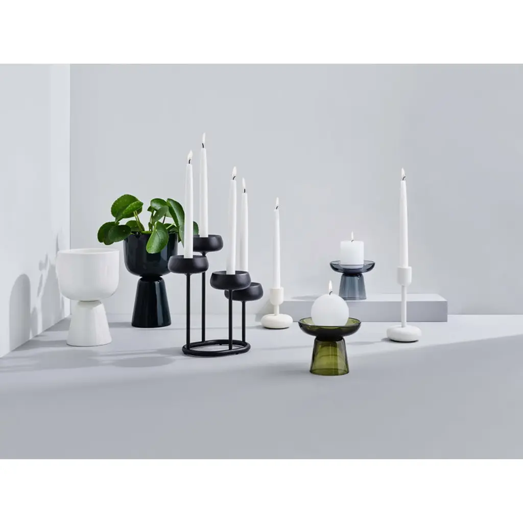 Iittala's delightful Nappula candleholder was designed by Matti Klenell. He drew his inspiration for the round shape from the legs of a peculiar table he saw while visiting the Nuutajärvi glass museum. Nappula is a beautiful combination of classic and contemporary design and will stand the test of time. The sturdy base ensures the candleholder stays upright.