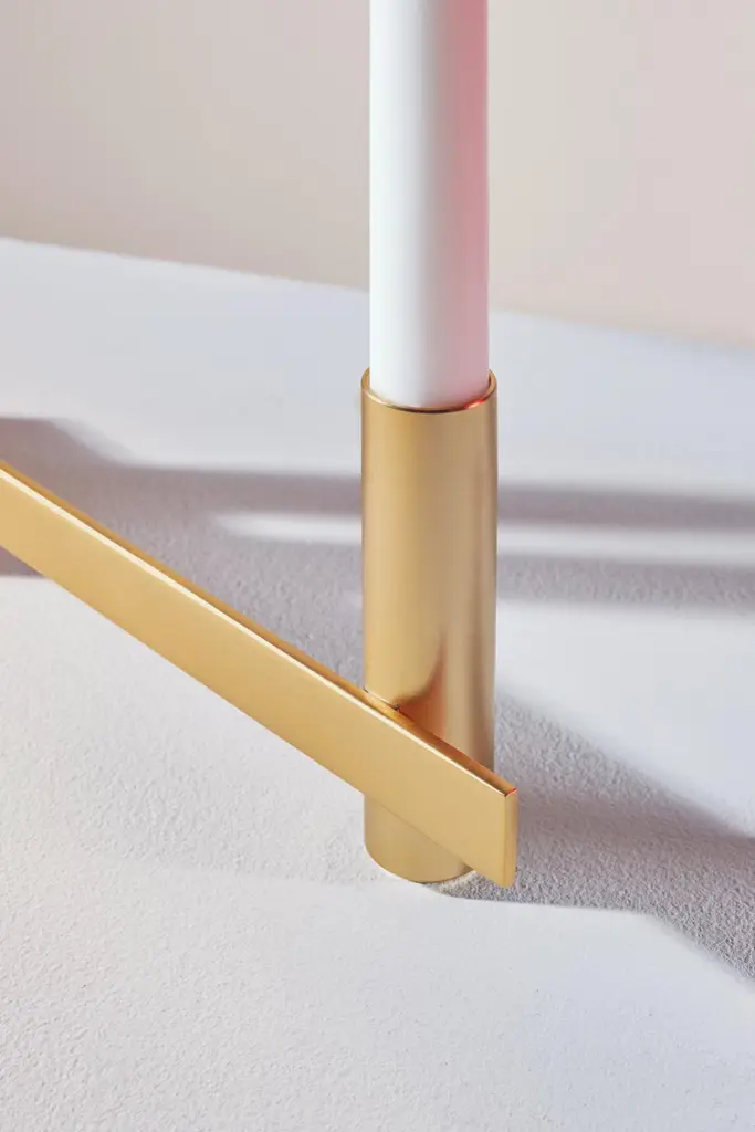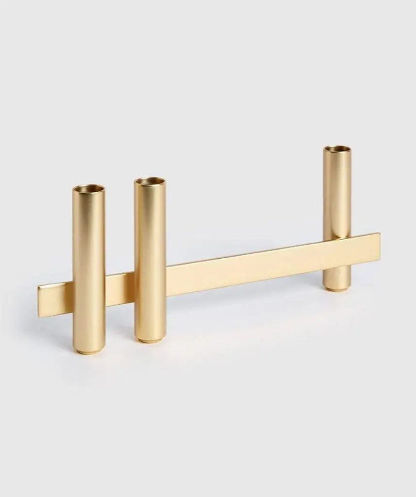 Nero candle holder by Mason EditionsDimensions: 31 × 5 × 10 cmMaterials: ironColors: black, matte 24K gold, cotto, sage green and light grey.Consisting of a longitudinal metal bar supporting cylindrical elements on both sides, Petit is an object defined by an austere and minimal design, played out on the proportions and distance between the elements to give this project a dynamic look and an unusual asymmetry, which sets it apart from the compositional consistency of more traditional candelabras. Minimal and sophisticated three-tier candle holder, a modern statement for your console area, foyer, or simply a splendid centerpiece for your dining table.Available in several finishings: black, matte 24K gold, cotto, sage green and light grey.Mason Editions is an Italian company specialized in the production of design furniture, lighting solutions, and accent pieces. Born from the lifelong passion for lighting and entrepreneurial spirit of Fabio and his partner Silvia, Mason Editions places itself halfway between fine art and exquisite craftsmanship. A collection of lighting, design objects, and furnishing accessories, signed by artists Serena Confalonieri, Martina Bartoli, and Matteo Fiorini, head of the creative direction. Mason editions come from the experience of an Italian lighting company placed in the Veneto region. This new brand of furniture elements was born from the meeting between the entrepreneur Fabio Mason and three international designers who designed the first collection for a sophisticated public. Therefore the collection wants to be eclectic and timeless. The material contrast and fresh design, with essential shapes, mark the mason editions collection. In conclusion, the elegant Italian sign highlights proposals suitable for all environments. Mason editions is a set of experiences, artisans, and productive know-how that creates a capable system.