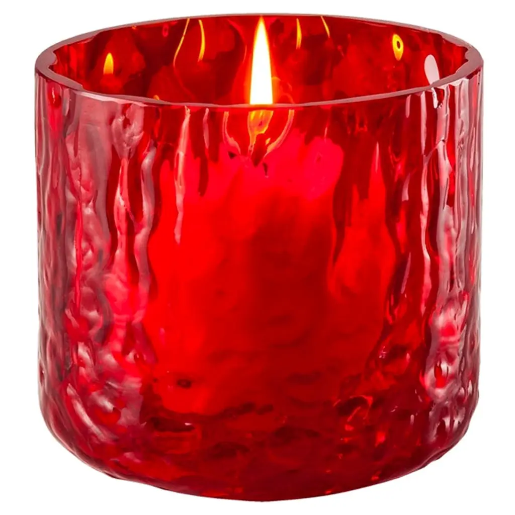 The warm glow of candles meets glass etched using the special Balloton technique. Its light flickers and dances, casting a multitude of reflections on the refined Tea, Red, Grape or Grass Green texture. An endless shimmer evoking the magic of Christmas.Additional information:Material: GlassColor: RedDimension: Ø 12 x H 11 cmAvailable in other color options: Grape, grass green and teaCandle provided.