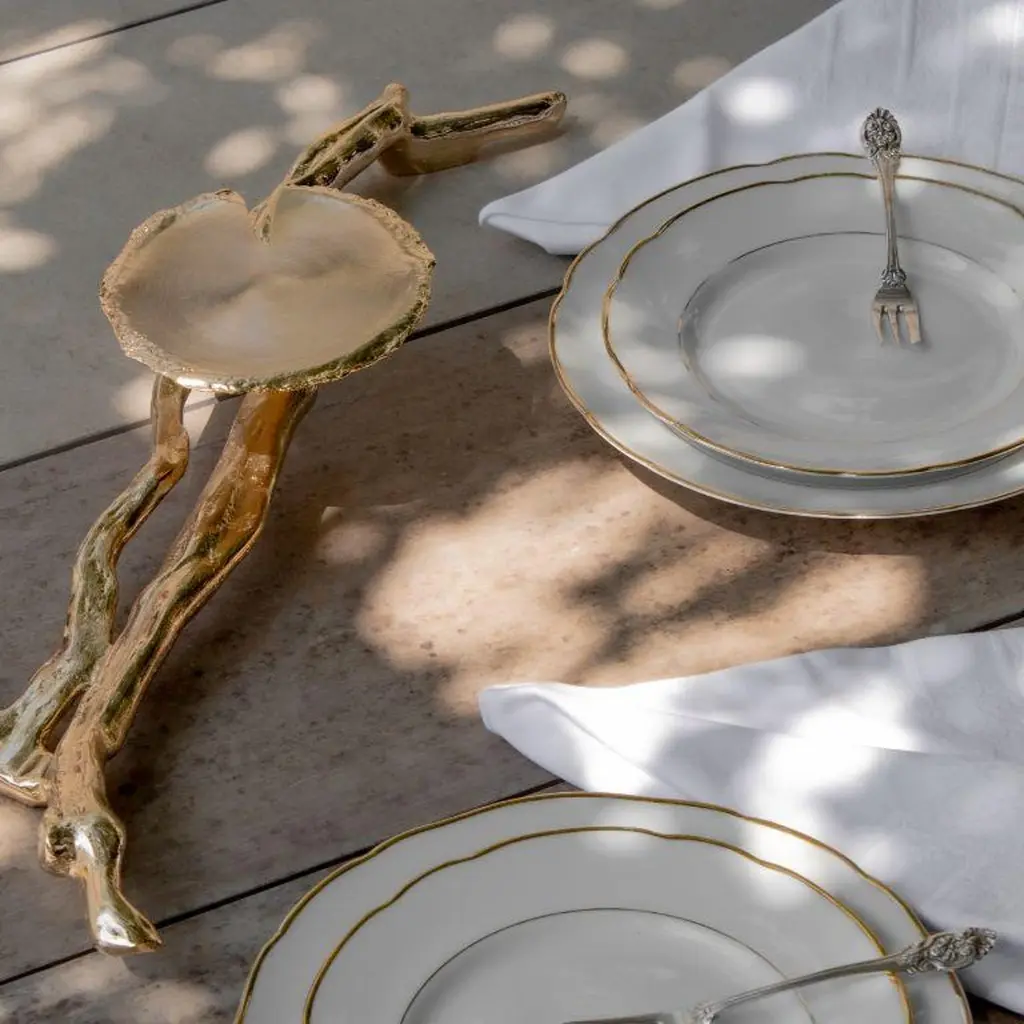 Introducing Nuphar, a sophisticated candle holder that transcends ordinary decor with its exquisite design inspired by the serene beauty of marshes and still waters. This organic decorative element captures the essence of nature's delicate balance and refined movement, transforming any space into a haven of tranquility and elegance.Nuphar’s design artfully alludes to the graceful forms of leaves and roots, achieved through a masterful reinterpretation that combines natural inspiration with contemporary sophistication. Each curve and contour of this candle holder is meticulously crafted, embodying a sense of delicacy and sensitivity that evokes the tranquil ambiance of an aquatic hemisphere.This distinguished candle holder is more than just a functional accessory; it is a statement piece that enhances the aesthetic appeal of any setting. The refined design of Nuphar allows it to seamlessly integrate into various decor styles, from modern minimalist to classic elegance, making it a versatile addition to your home.When illuminated, Nuphar casts a warm and inviting glow that highlights its intricate details, creating a serene atmosphere reminiscent of calm waters and gentle breezes. The organic movement suggested by its design adds a dynamic yet subtle touch, drawing the eye and sparking admiration.Crafted with the highest standards of artistry and precision, Nuphar exemplifies the perfect blend of form and function. Its sophisticated charm and natural beauty make it an ideal centerpiece for dining tables, living rooms, or any space that benefits from a touch of elegance.Elevate your interior decor with Nuphar, the candle holder that brings the serene beauty of nature into your home. Let this exceptional piece add a layer of sophistication and tranquility to your environment, creating moments of peace and refinement in your daily life. With Nuphar, experience the harmony of nature and design in a beautifully crafted decorative element.