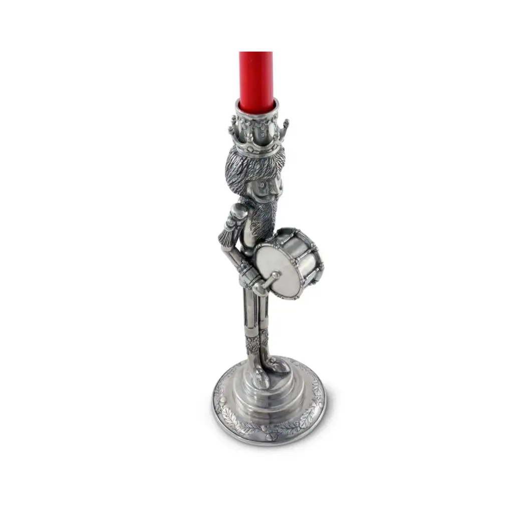 Decadently detailed, these handsome nutcrackers will light up your space with special sparkle bringing holiday tradition and cheer. Our Bell Ringer Nutcracker is handsomely detailed in full holiday military regalia with a shining bell in his hand. The drummer wears the same outfit while also holding his drum and sticks. Each candlestick is sold individually. Choose from 2 styles. Vagabond House is a family-owned American company specializing in fine pewter tableware, servingware and giftware. Largely inspired by nature, their exclusive products are designed to be unique, functional heirlooms for those who seek to express tradition and style in both family and formal entertaining.