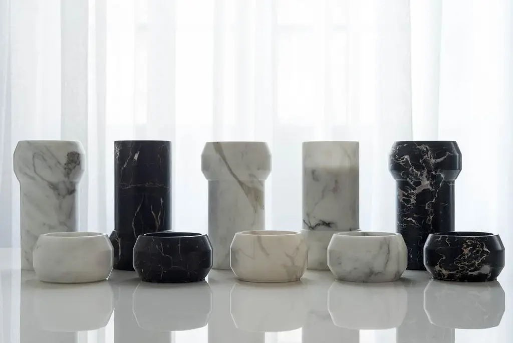 Octans St Laurent candleholder duo by Dan YeffetDimensions: Ø 142 x H 80 mm Ø 141 x H 250 mmMaterials: Marble Marble available:PortoroCalacattaPaonazzoBrown saint laurent Born in 1971 in Jerusalem, Israel. Studied Industrial Design at Bezalel Academy: School of Art and Design in Jerusalem (1999-2001). He then moved to the Netherlands where he graduated from the Gerrit Rietveld Academy in Amsterdam in 2002 (BA in industrial/product design). After his graduation he set up his studio in Amsterdam. In 2005 he moved his studio to Paris where he still works. Dan‘s work stretches from space to objects - and everything in between - and in various methods, from classic craft work to cutting edge technologies.