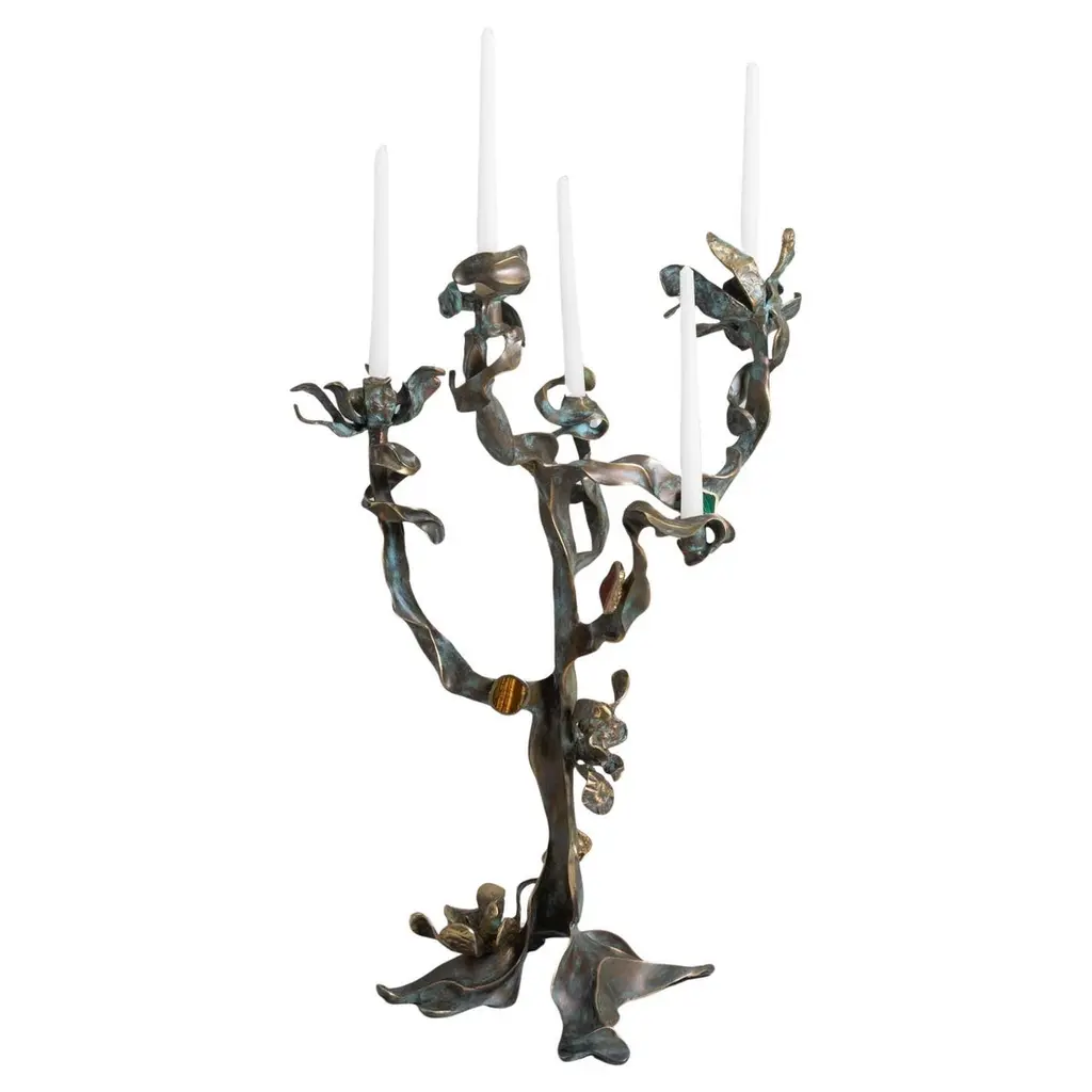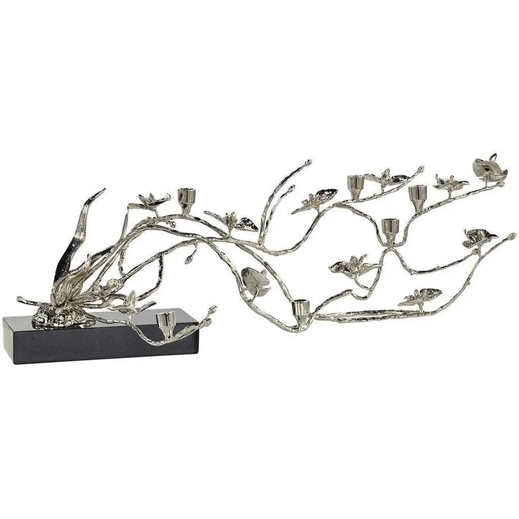 The Orchids in Bloom Candleholder is a gorgeous, naturally inspired statement piece crafted from brass. The design showcases a flowing orchid with detailed flora upon serpentine stems that feature three candle sockets. The piece is mounted on a square base of natural white marble, completing the look.