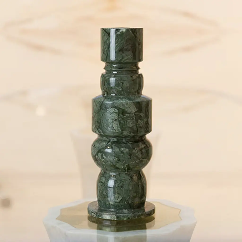 Oreadi Nemesi Green Guatemala Marble Candlestick By Rotella