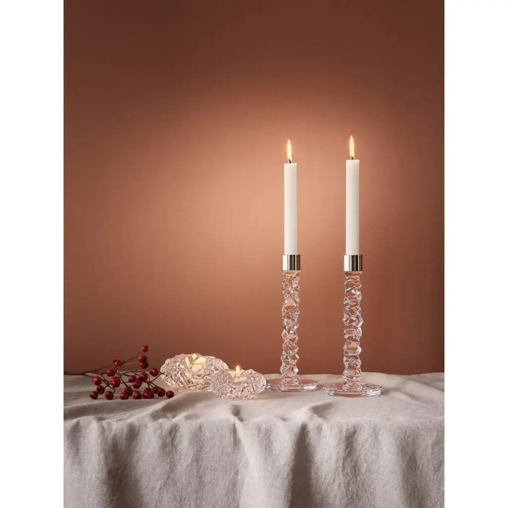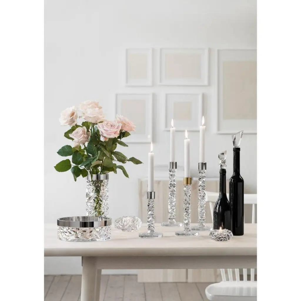 The Carat collection is based on a contemporary interpretation of the traditional cut glass for which Orrefors is world-renowned. The Carat Votive candle holder, available in two sizes, is covered with the collection’s characteristic asymmetrical motif, which produces beautiful reflections of light in the crystal. The votive is suitable for tealight candles. Designed by Lena Bergström.