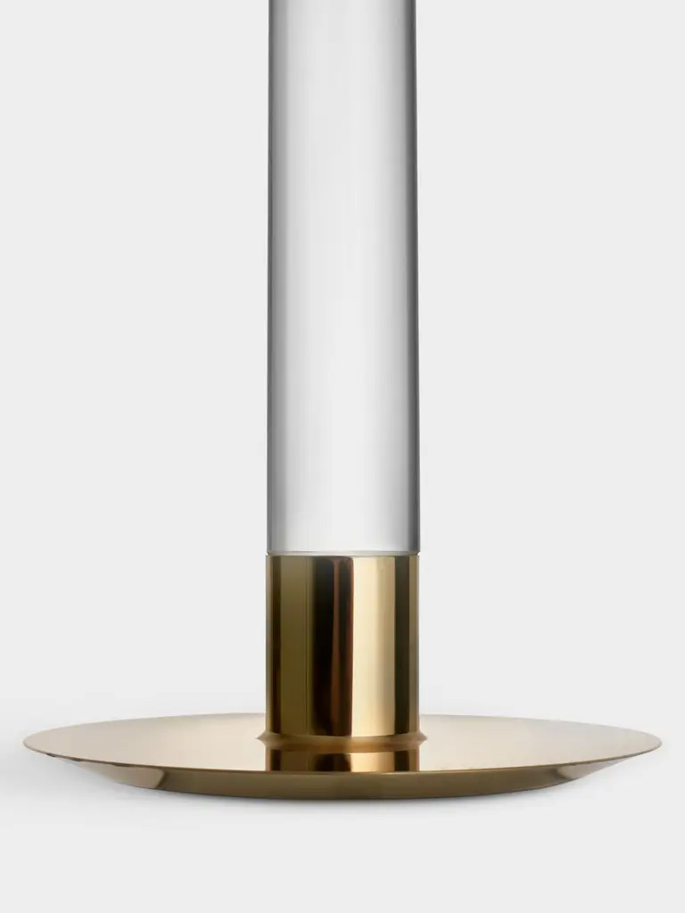 Lumiere from Orrefors has a contemporary expression based on the designer's, Ingegerd Råman, moderate approach. The candlestick is a minimalistic combination of the materials glass and golden metal.