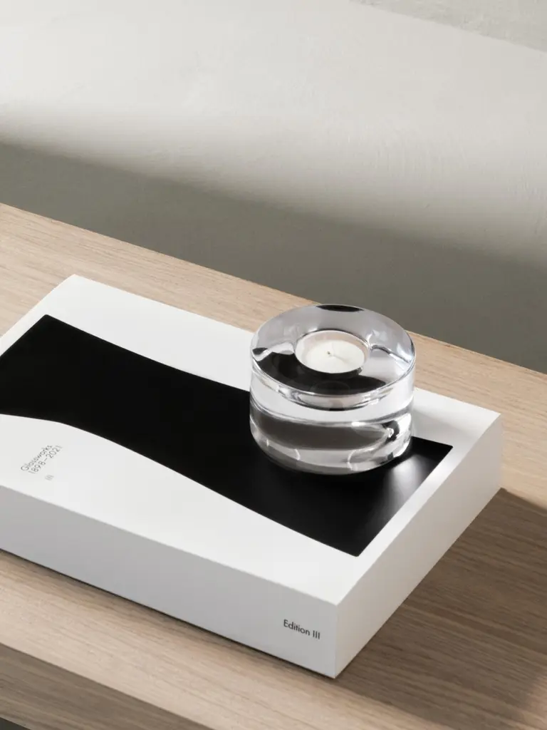 The small Puck Votive is a candle holder, suitable for tealight candles, with a minimalistic design that connects the similarities between pure crystal and ice. When the product from Orrefors first launched in 1999, it won the Excellent Swedish Design award. Puck is designed by Lena Bergström.