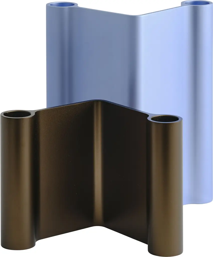 Pair Candleholder (2025) is offered in a range of sizes and colors for playful arrangements with a personal touch. Designed by Lars Tornøe for Muuto, it's crafted from a single piece of extruded aluminum, with smooth curves and CNC-milled edges finished in anodized matte coating for lasting durability. Group several Pairs together or place one with other decor to turn any tabletop, mantel, or open shelf to turn a simple flame into a refined focal point. Made in Vietnam and China.