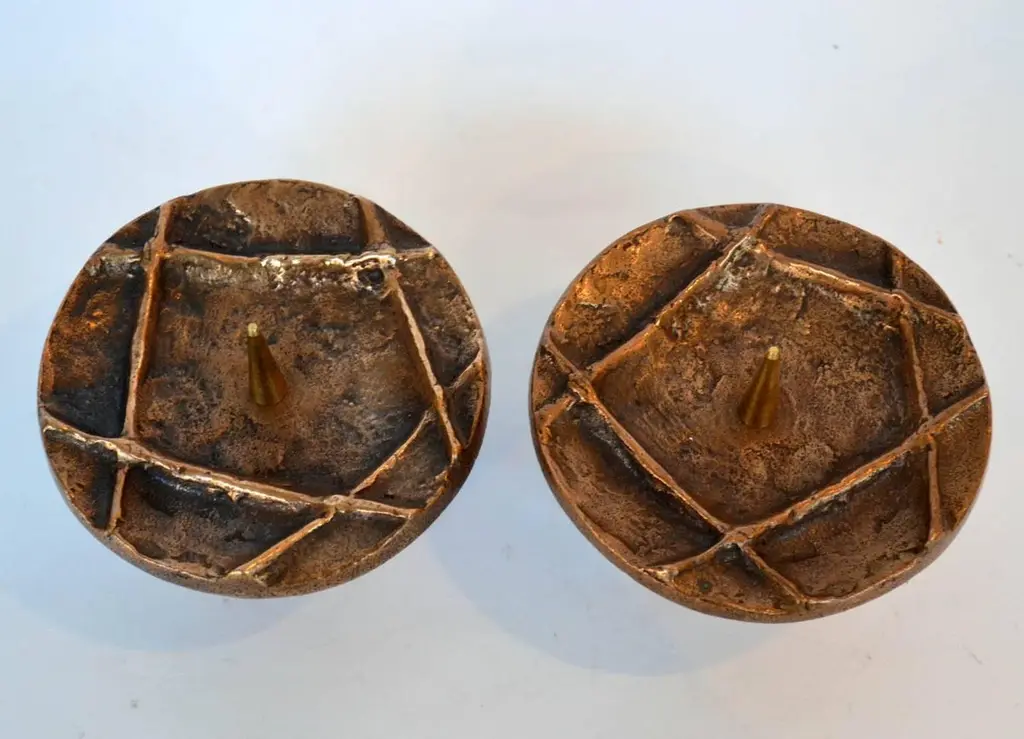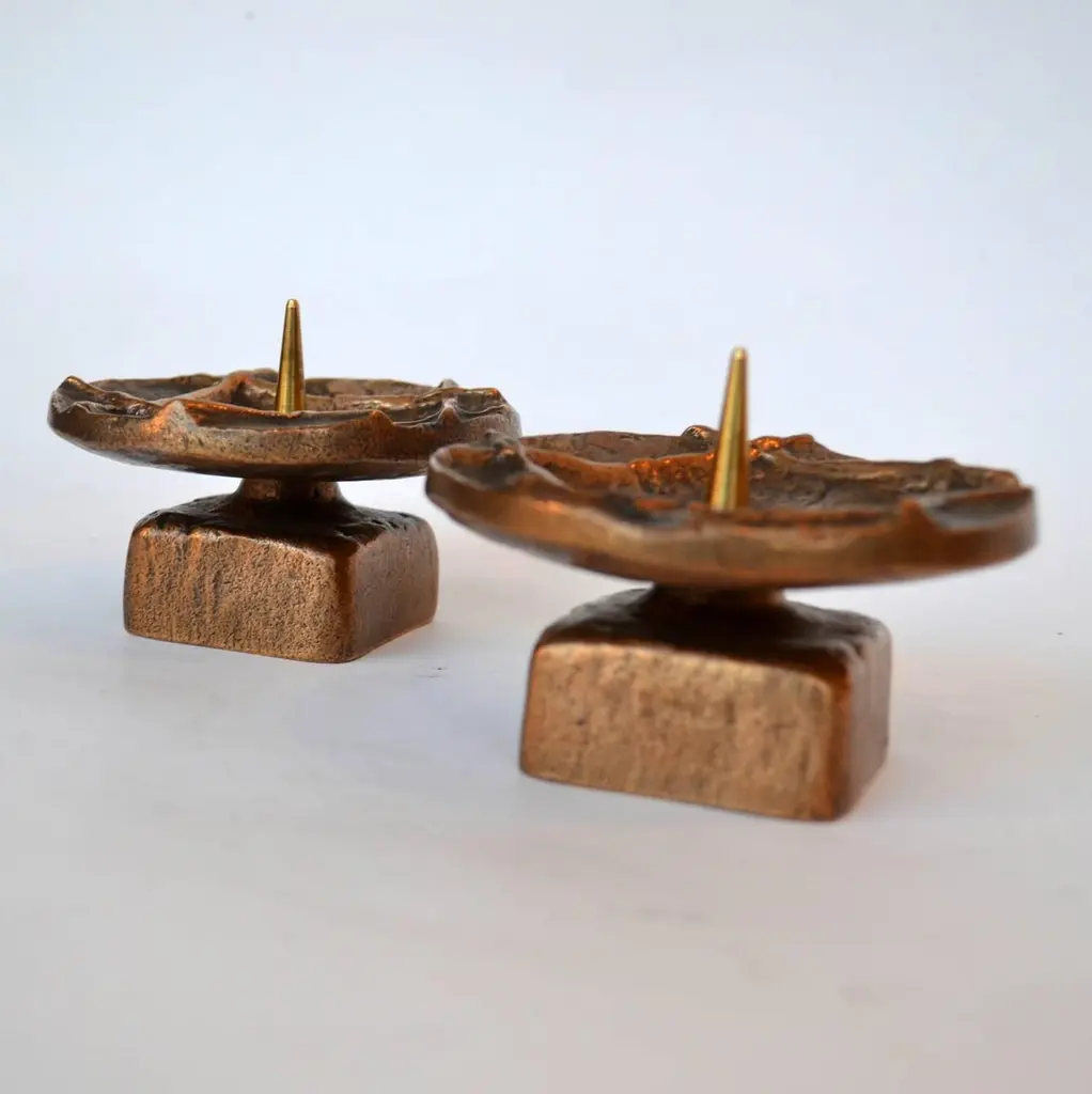 Pair Of 1970s Brutalist Bronze Candle Holders
