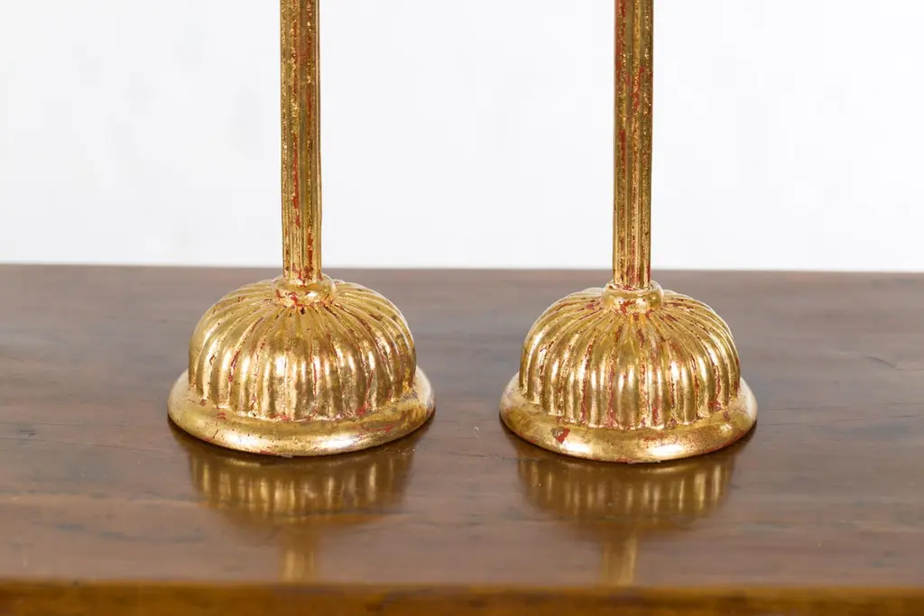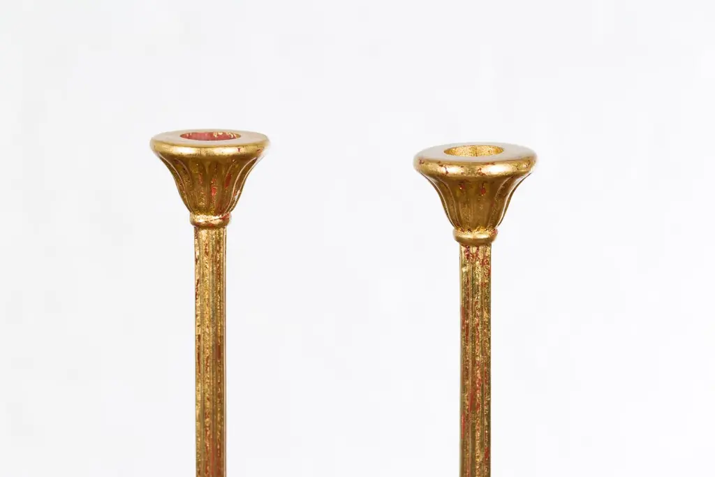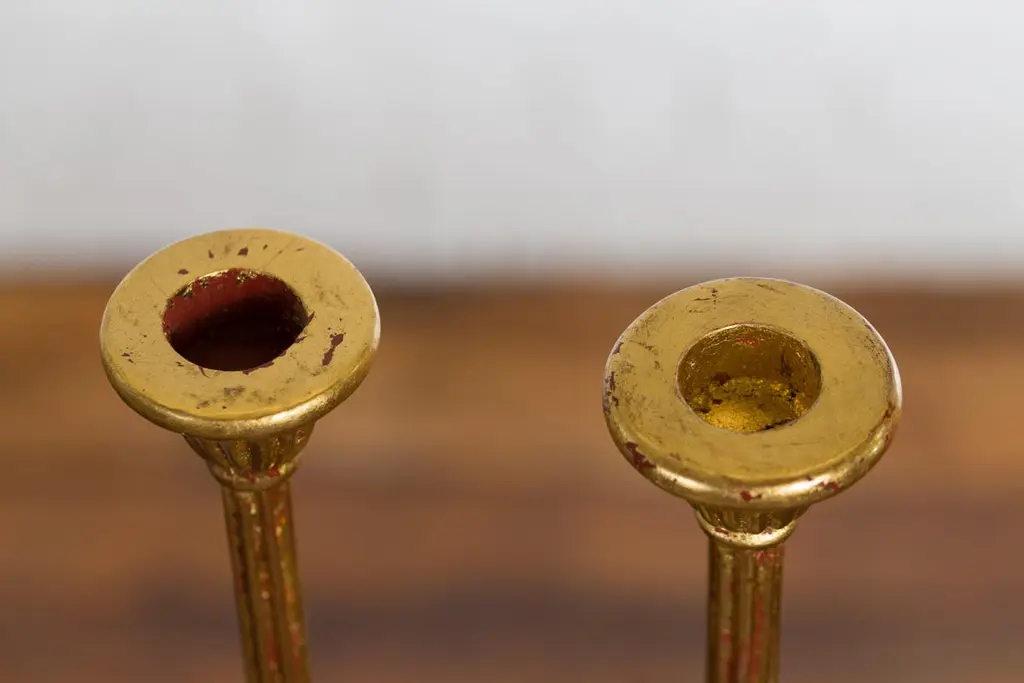Pair Of Japanese Hinamatsuri Gold Lacquered Candleholders With Lotus Bobèches