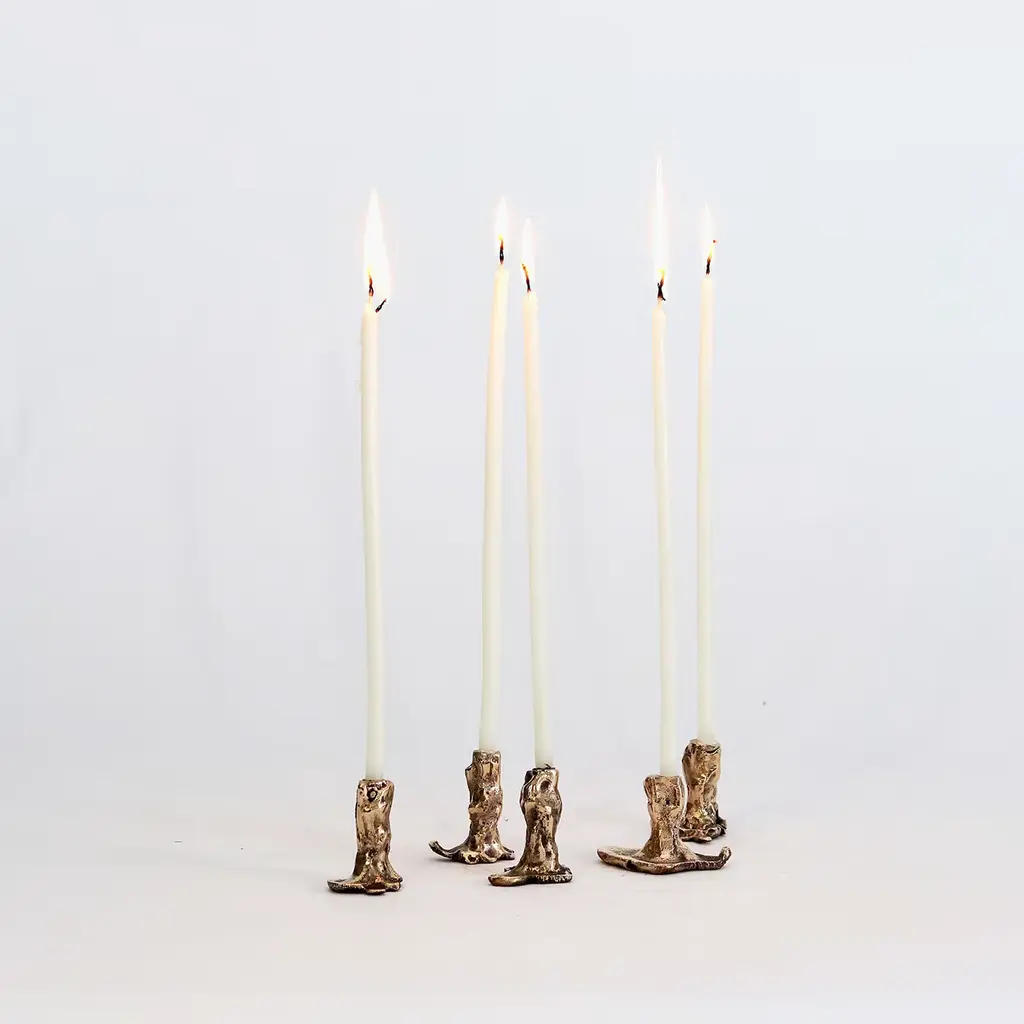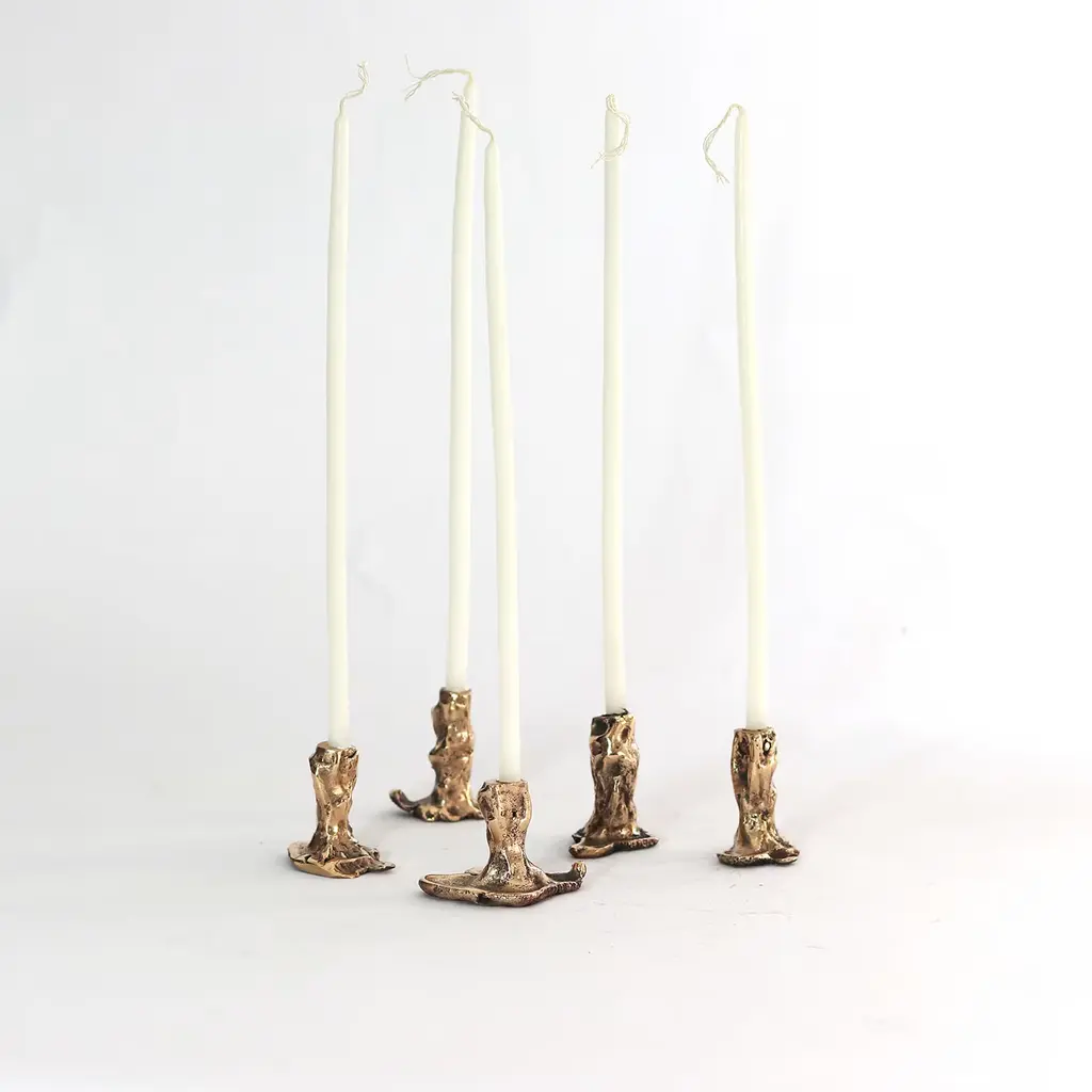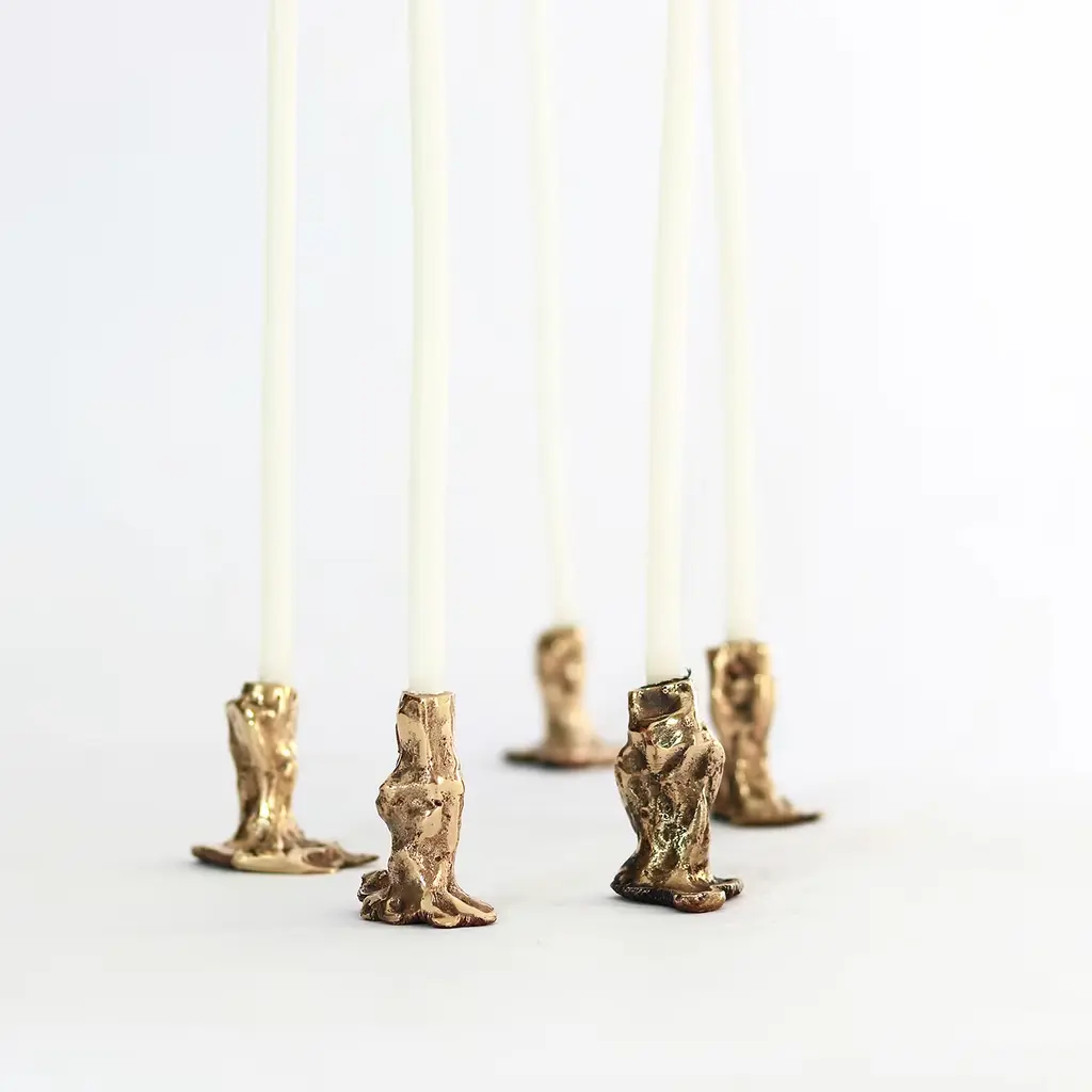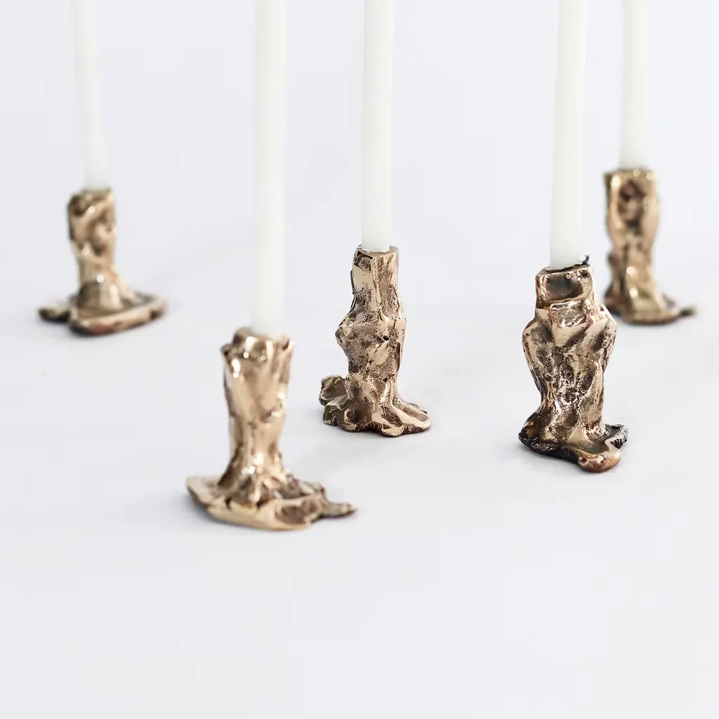Just like small and fantastic elves hopping in the woods, the Pixie Candle Holder is a series of singular handmade pieces of timeless value and sophistication. Fashioned of melted bronze using recycled material, each piece from the series is polished by hand and supports an 8mm candle. This piece is a one-off design and can only be reproduced in numbered pieces upon request. Please contact the Concierge for details.