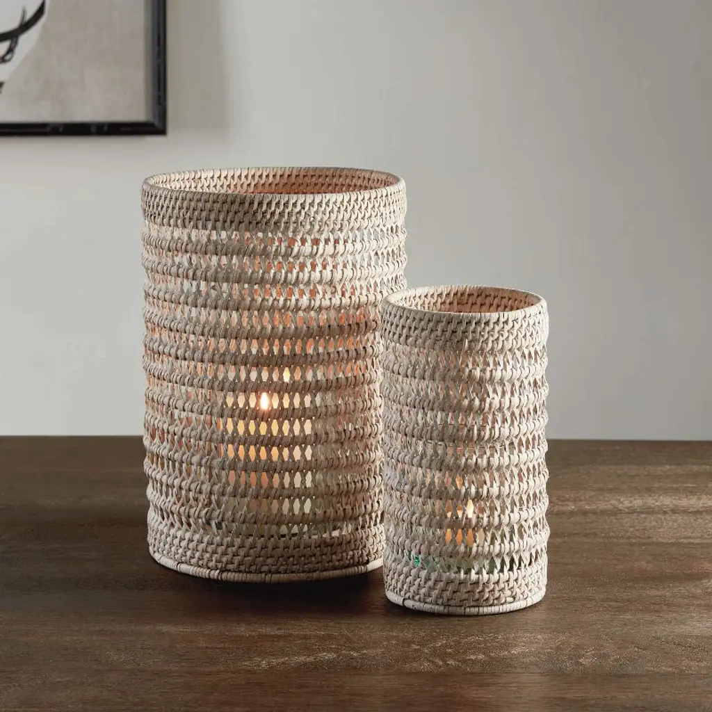 From the signature tight weave to the natural warm brown finish, Burmese artistry is truly exceptional. The open airy design of this hurricane makes a charming detail. A level of skill and craftsmanship handed down from generation to generation. Pair with an LED candle and enjoy the warm glow.