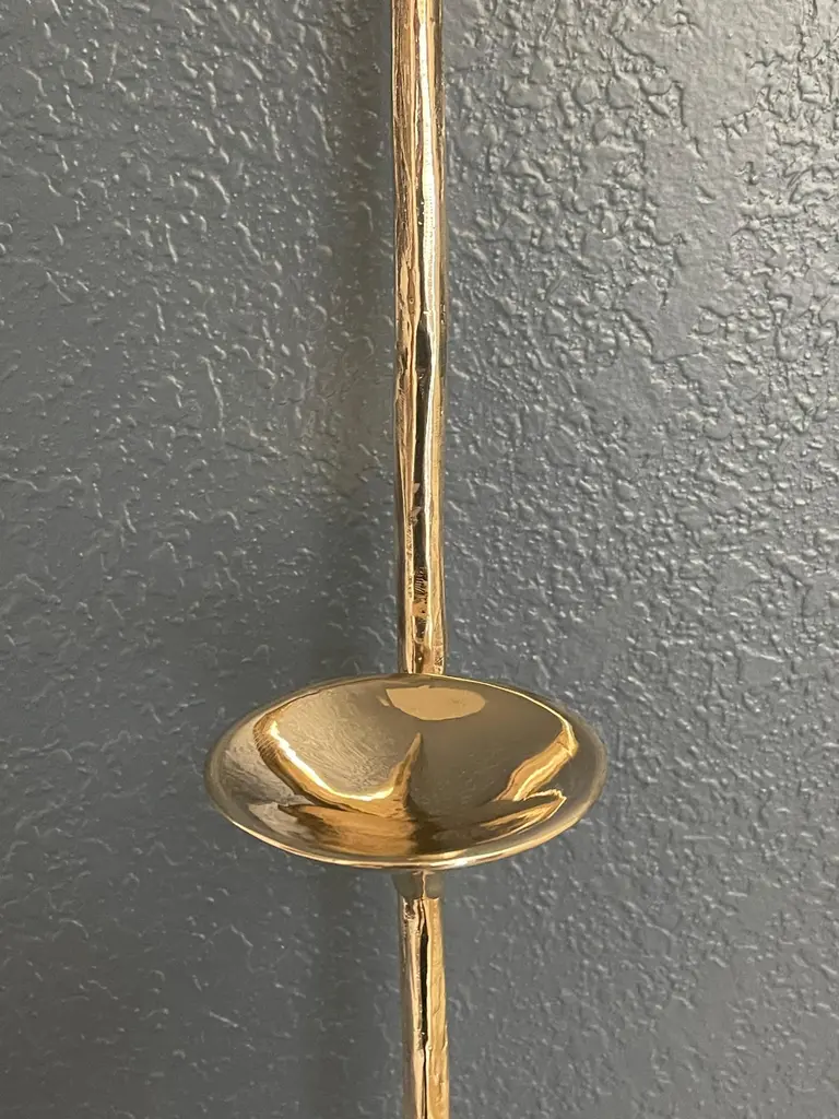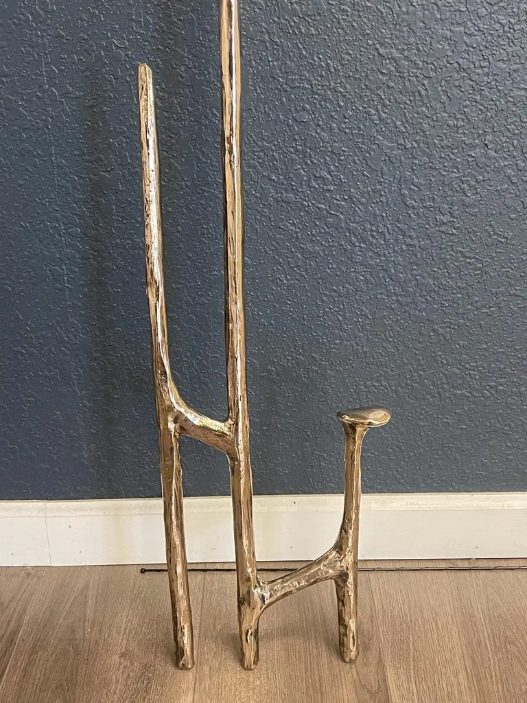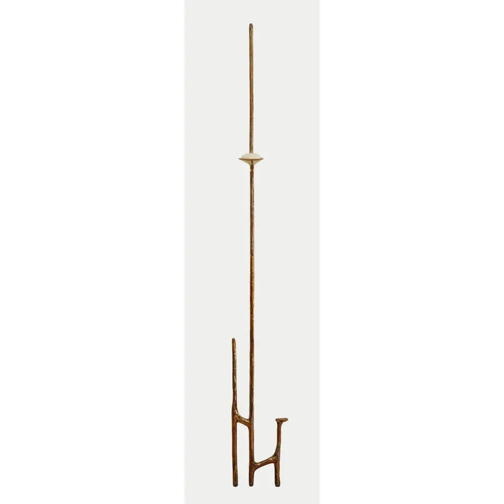 Polished bronze leaning candlestick by Mary Brogger.Dimensions: W 33 cm x D 5 cm x H 196 cm.Materials: polished bronze.Also available in other finishes and dimensions.Mary Brogger is an internationally recognized artist whose diverse practice includes sculpture and site-responsive installation, as well as art direction, prop making, fashion, furniture, and light fixture design. Brogger's knowledge of the history of art and design, along with her refined and accomplished use of materials, provide the visual richness, technical agility, and conceptual cohesion that characterize her practice. Until relocating her studio to Los Angeles in 2009, Brogger served as an instructor in the Sculpture and the Fiber and Materials Studies Departments at the School of the Art Institute of Chicago. She is a recipient of distinguished awards from the National Endowment for the Arts and the Illinois Arts Council and has been nominated for awards and fellowships from the Richard H. Driehaus Foundation, the Louis Comfort Tiffany Foundation, and Anonymous Was a Woman. Brogger's work has been exhibited internationally and is held in many distinguished private and public collections including the Museum of Contemporary Art, Chicago.