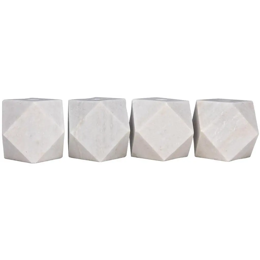 Polyhedron 4 X 4 Inch Decorative Candle Holder In White, Set Of 4