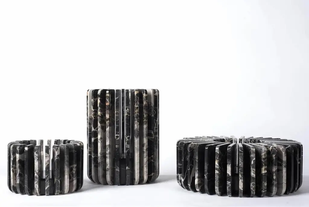Portoro orion candleholder set by dan yeffet dimensions: ø 18.7 x h 12 cm ø 19.7 x h 25 cm ø 32 x h 12 cm materials: marble size available: marble available: marquina grey saint laurent portoro paonazzo calacatta this piece is attributed to the mentioned designer/maker. It has no attribution mark and no official proof of authenticity, however it is well documented in design history. I take full responsibility for any authenticity issues arising from misattribution