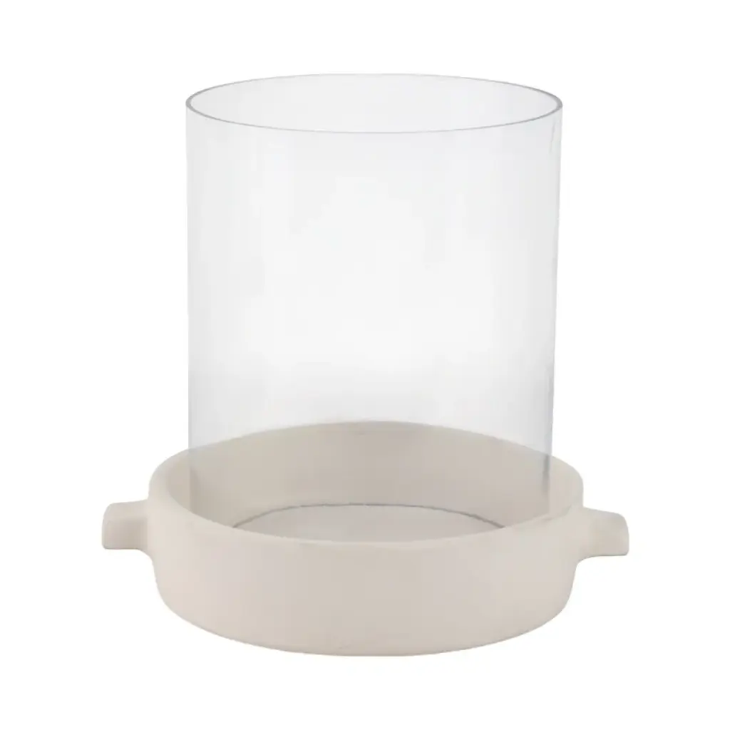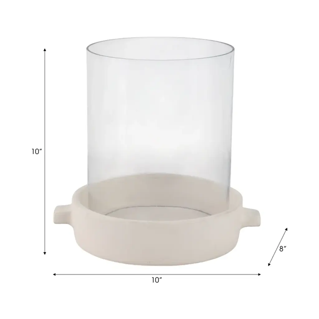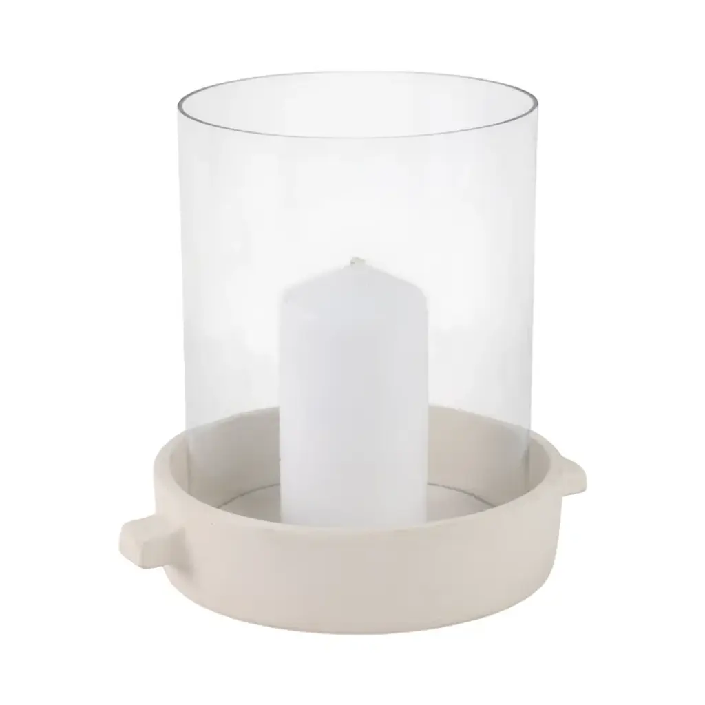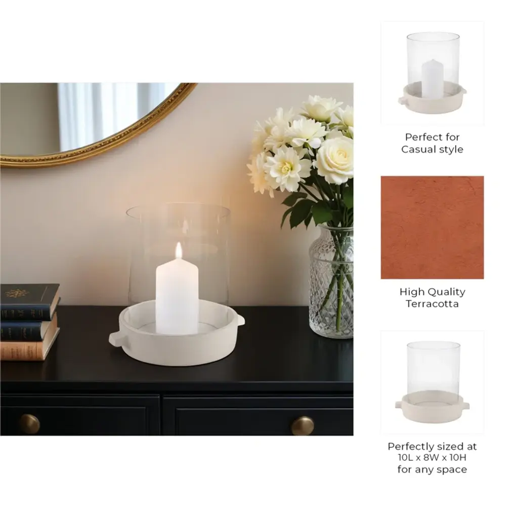 Pottery And Glass Pillar Candle Holder With Terracotta Base Stylish And Decorative Holder With A Modern Rustic Look