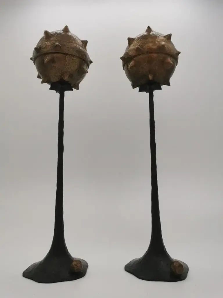 Set of 2 Primus small candlesticks by Emanuele Colombi Limited Edition: 1 out of 12 Dimensions: W 10 x D 10 x H 31.5 cm Materials: Bronze Emanuele Colombi is an architect, interiors designer and sculptor who has worked in the past on various projects, from urban projects to art works, passing through architecture and interiors design. This year, he launches his first collection of exclusive furniture and decorative objects named Roma Collection. His objects are positioned between the art, the handcraft and the interiors design worlds. All the projects are thought, drawn, modeled and coordinated by himself.