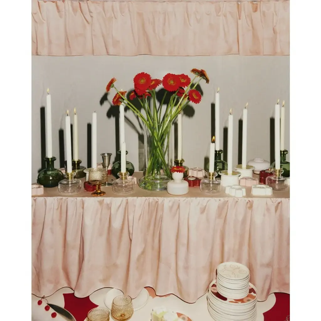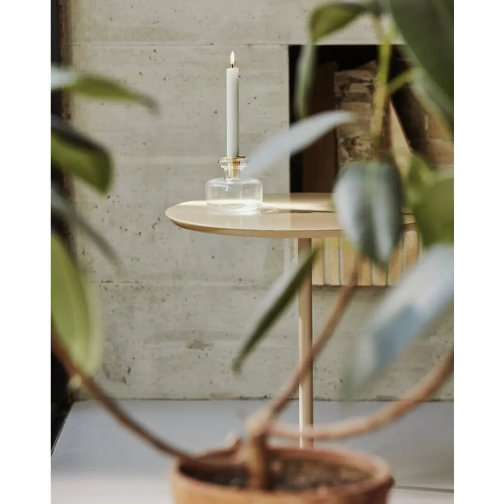 Marimekko's Puteli candleholder is made of mouth-blown glass. The contemporary candlestick is easily recognizable as a creation by the Swedish designer Carina Seth Andersson, and its design language perfectly combines modern minimalist esthetics with beloved Nordic traditions. Thanks to the detachable metal candleholder cup, it can also be used as a small vase.