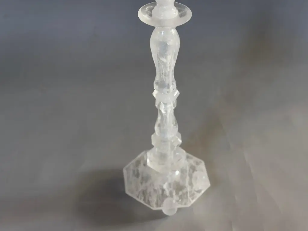 Finely carved rock crystal candle holder by Phoenix Custom size upon request