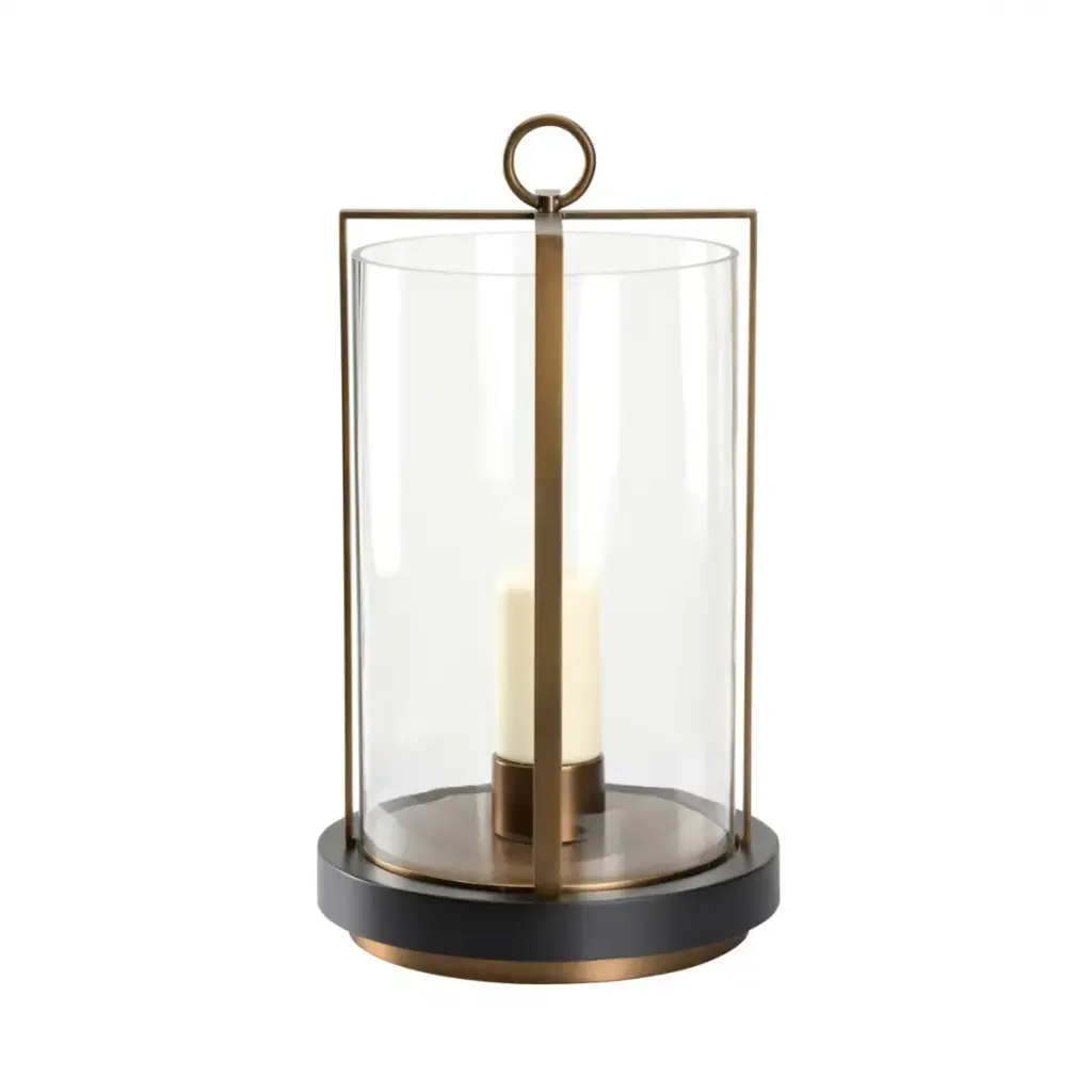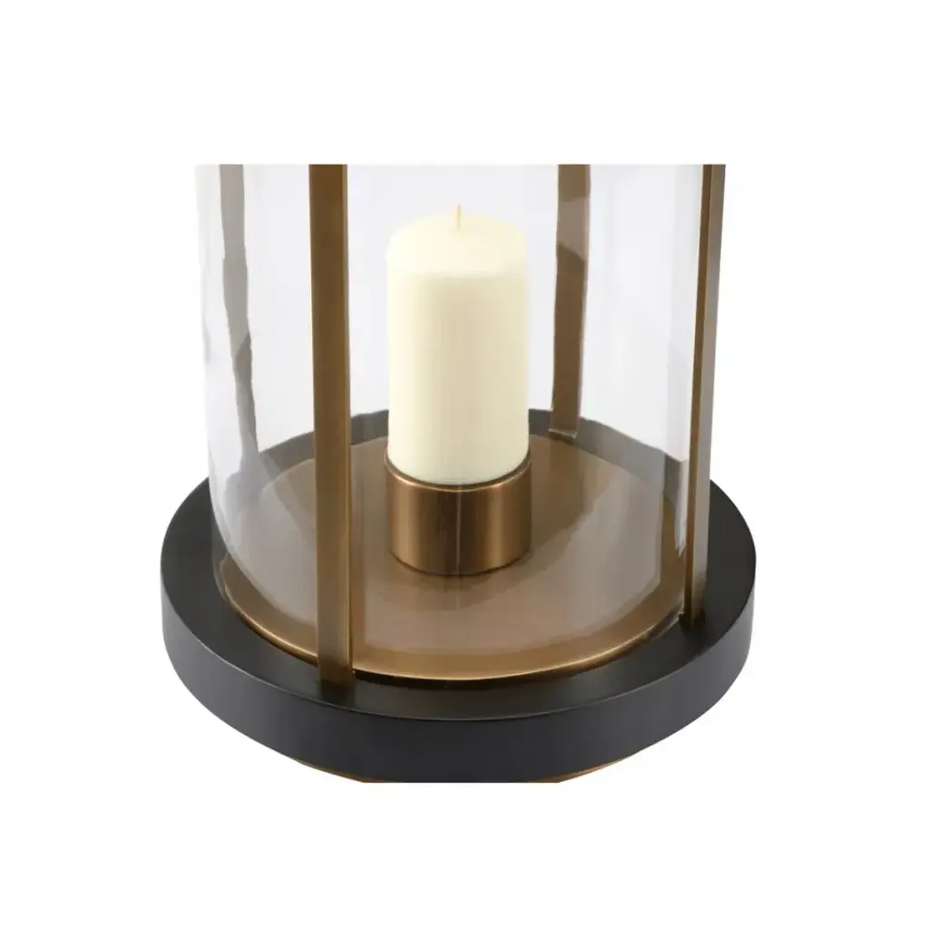 HANDSOME BLACK AND ANTIQUED BRASS CANDLEHOLDER WITH CIRCLE ACCENT. DESIGNED BY BRADSHAW ORRELL.