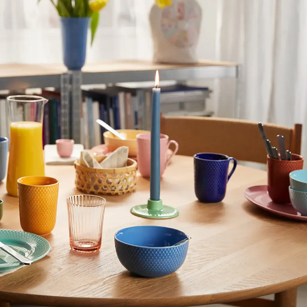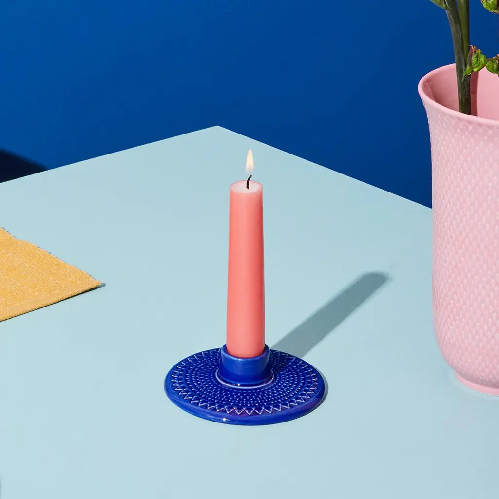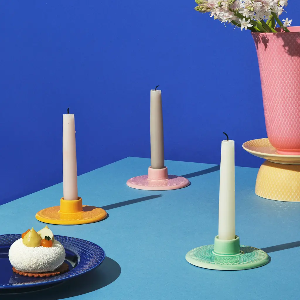 A vibrant and textural accent for any space, the Rhombe Color Candle Holder from Lyngby Porcelaen is a tribute to the brand's design archives. This porcelain candle holder features the iconic Rhombe pattern, a subtle geometric relief from the brand's archives. The delicate, three-dimensional texture emerges beautifully through the glossy glaze, adding a touch of sophisticated detail. This set of four is perfect for creating a warm, inviting atmosphere on a dining table, coffee table, or mantelpiece. Highlights: