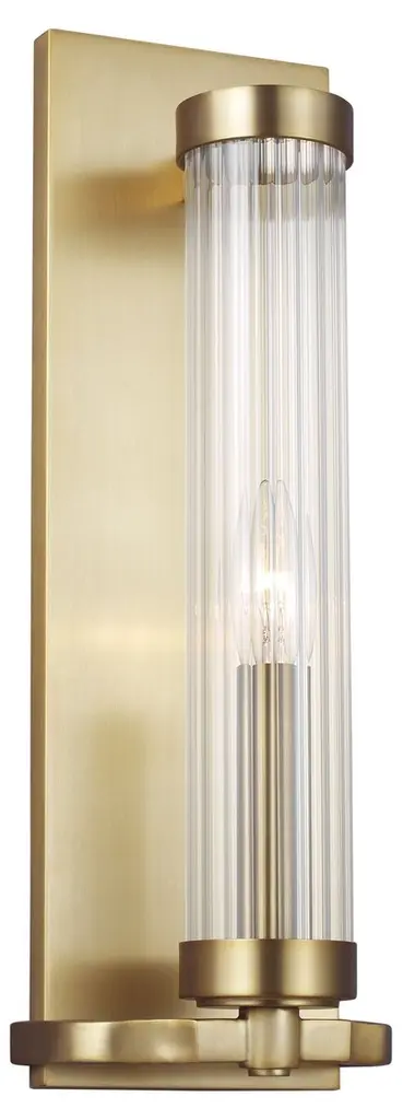 Rippled for an elegant effect, brass wall sconce looks lovely flanking a bed or on its own supporting a single taper candle. CB2 exclusive.