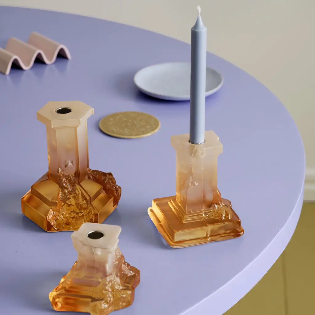 Monumental contours meet raw, jagged surfaces in the limited edition collection of Rocky Baroque Candlesticks from Kosta Boda. Both sculpture and utility objects, the candle holders were designed by artist Hanna Hansdotter and handmade in Kosta, Sweden of vibrant crystal.